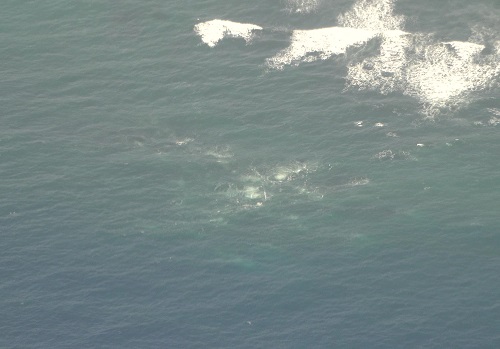翁浜の青白色の変色水域 海上保安庁 撮影