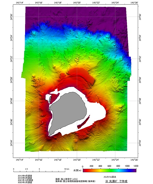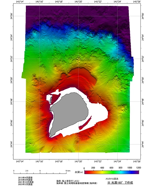 硫黄島の北西約15kmに海勢西ノ場(24°50.8'N,141°07.8'E,水深187m)がある.海勢西ノ場と推定される位置から火山活動の報告があるが詳細不明.