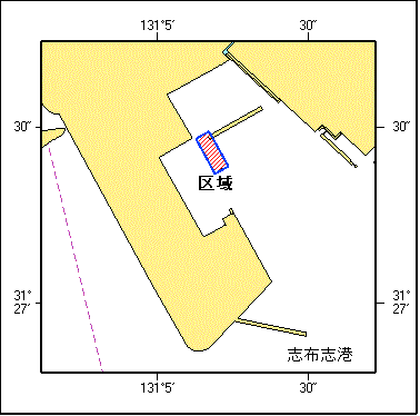 潜水士及び起重機船等による岸壁築造工事が実施される。 期 間 令和8年3月2日〜8月20日、日出〜日没 区 域 4地点により囲まれる区域 (1) 31-27-28.1N 131-05-07.6E (2) 31-27-29.3N 131-05-10.2E (3) 31-27-23.4N 131-05-14.0E (4) 31-27-22.1N 131-05-11.3E 備 考 潜水作業中、国際信号旗「A」旗を掲揚 付近に警戒船を配置 海 図 W1257 出 所 志布志海上保安署