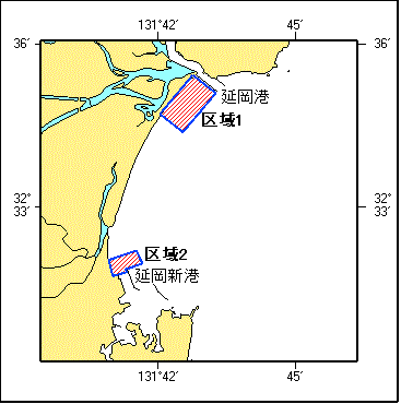(1) 32-35-26N 131-42-45E (岸線上)