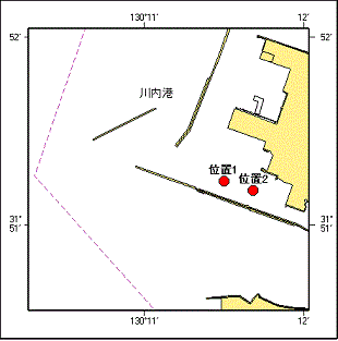 (十管区水路通報8年8号76項削除)1.黄色灯付浮標が設置されている。 位置1 31-51-14N 130-11-30E 2.黄色灯付浮標が流失している。 位置2 31-51-11N 130-11-41E 備 考 単せん黄光 4秒に1せん光 海 図 W1254 出 所 串木野海上保安部