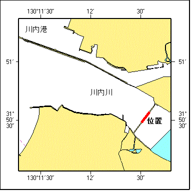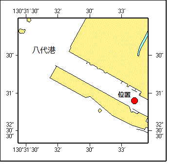 位 置 32-30.9N 130-33.2E (八代港第6号灯浮標、灯台表第1巻、6531)