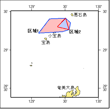 ただし、(3)(4)間は26-22-14N 127-47-53Eの地点を中心とする半径120海里の円弧、