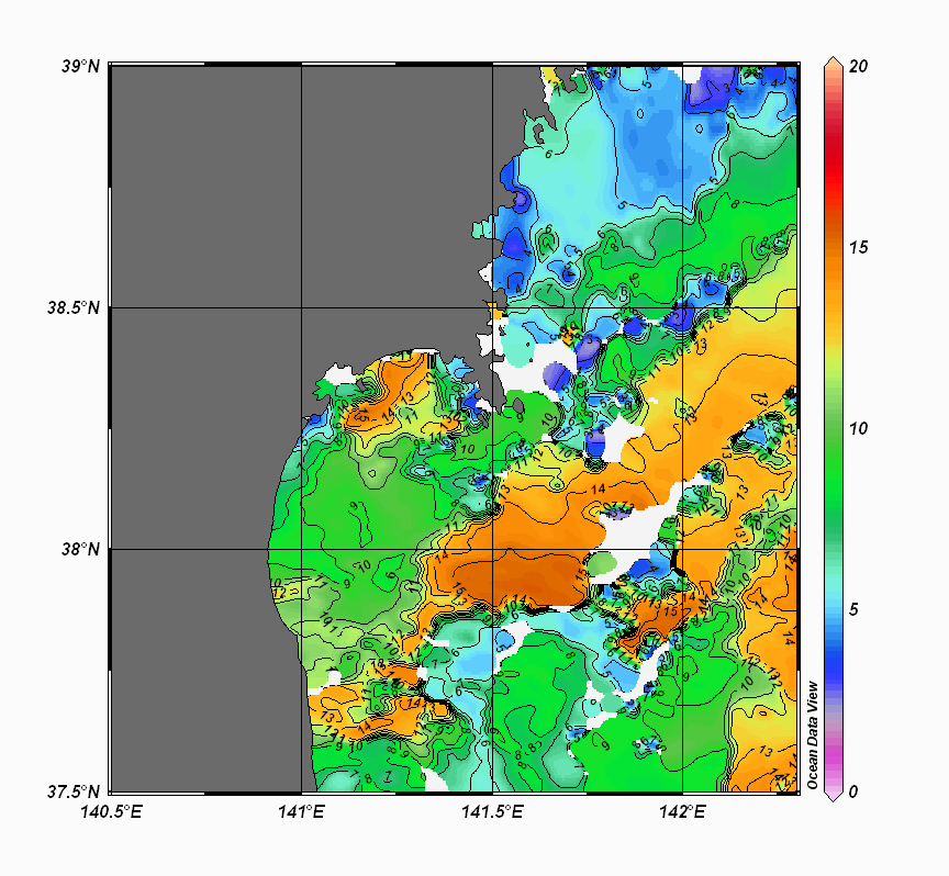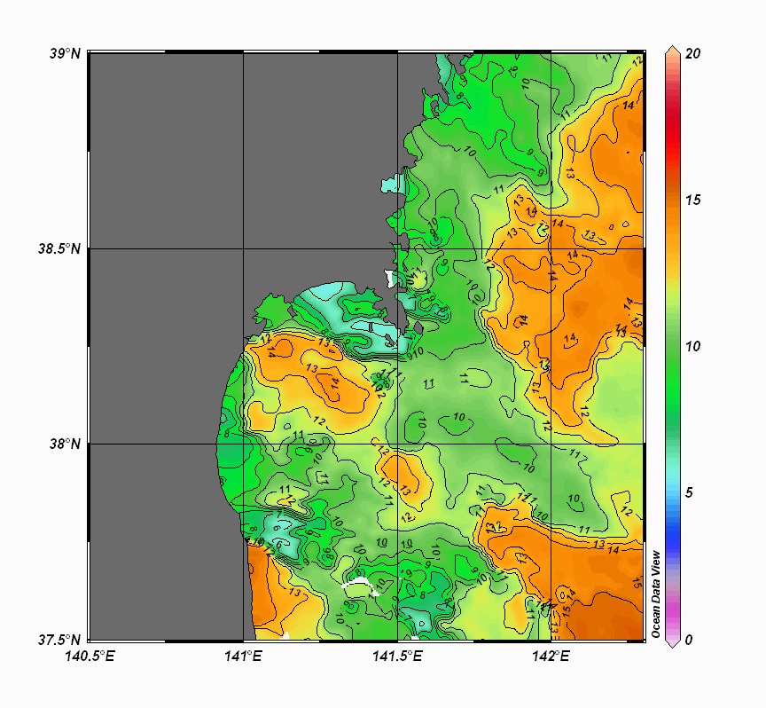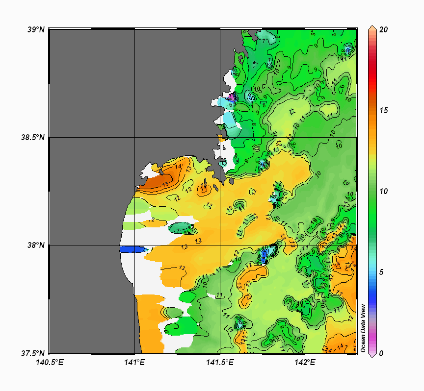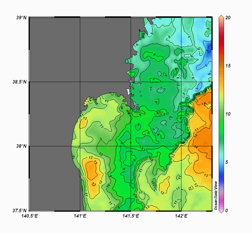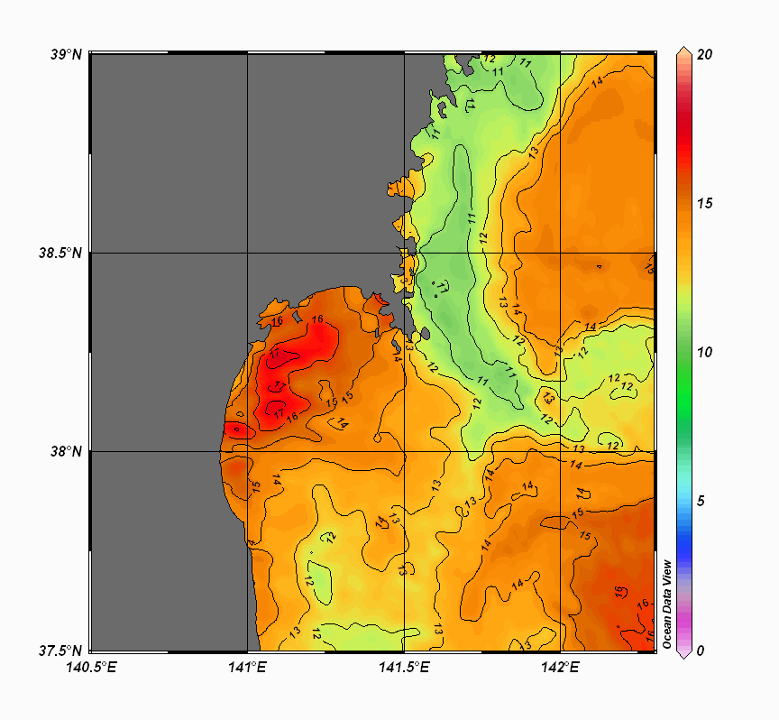 2008年4月から2025年8月までの、仙台湾付近表面水温を掲載しています。
