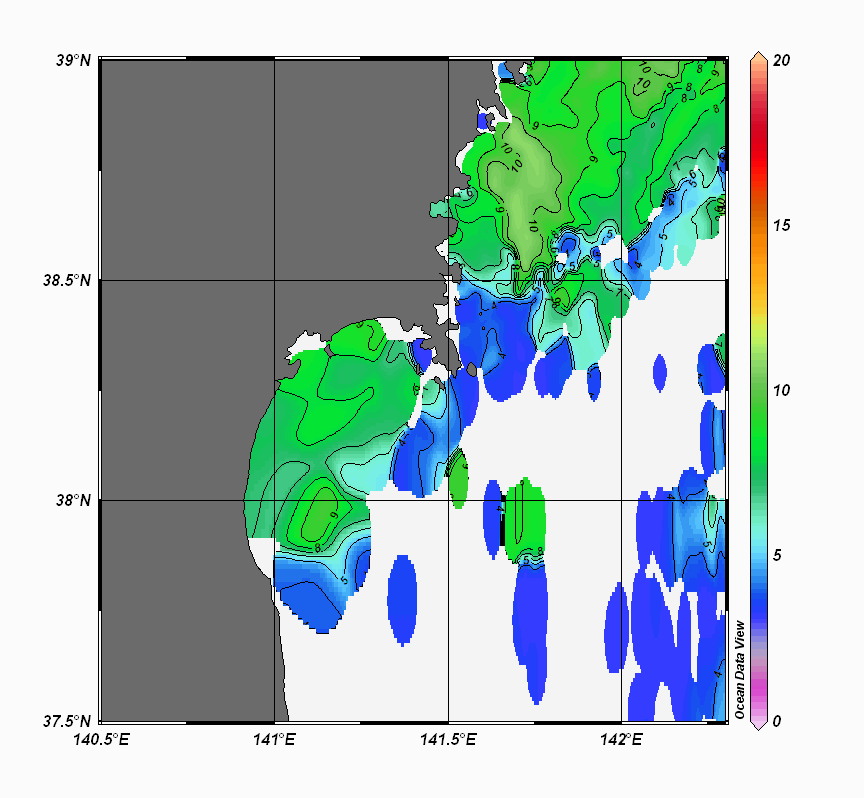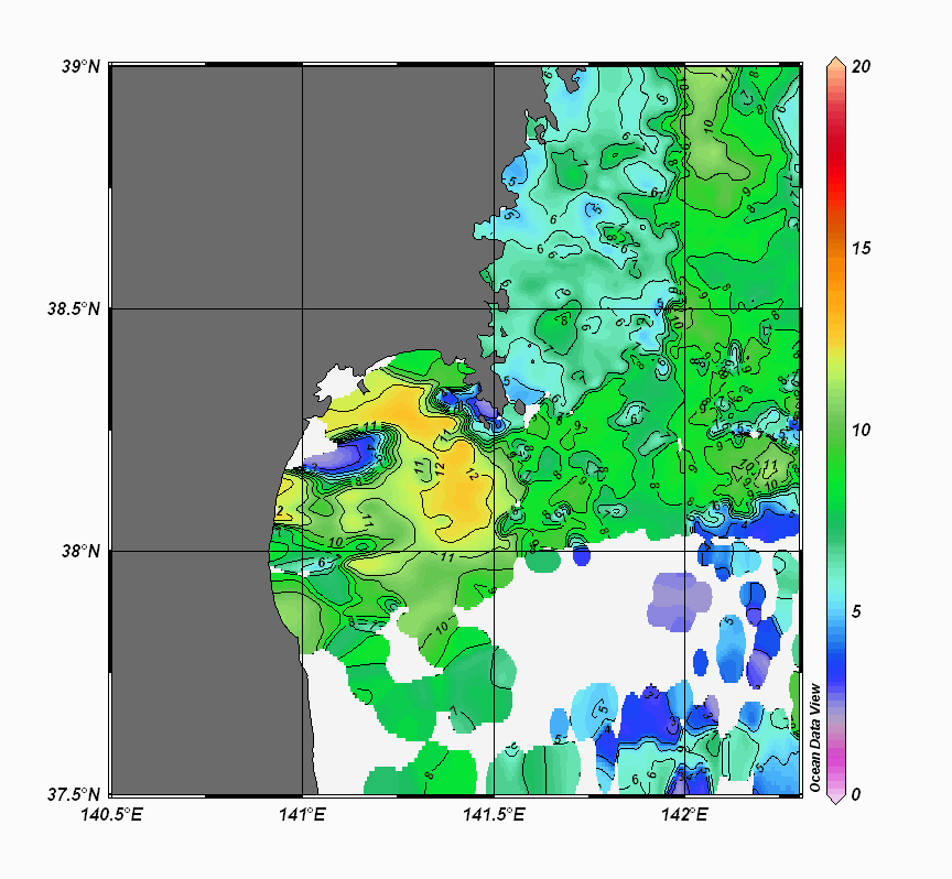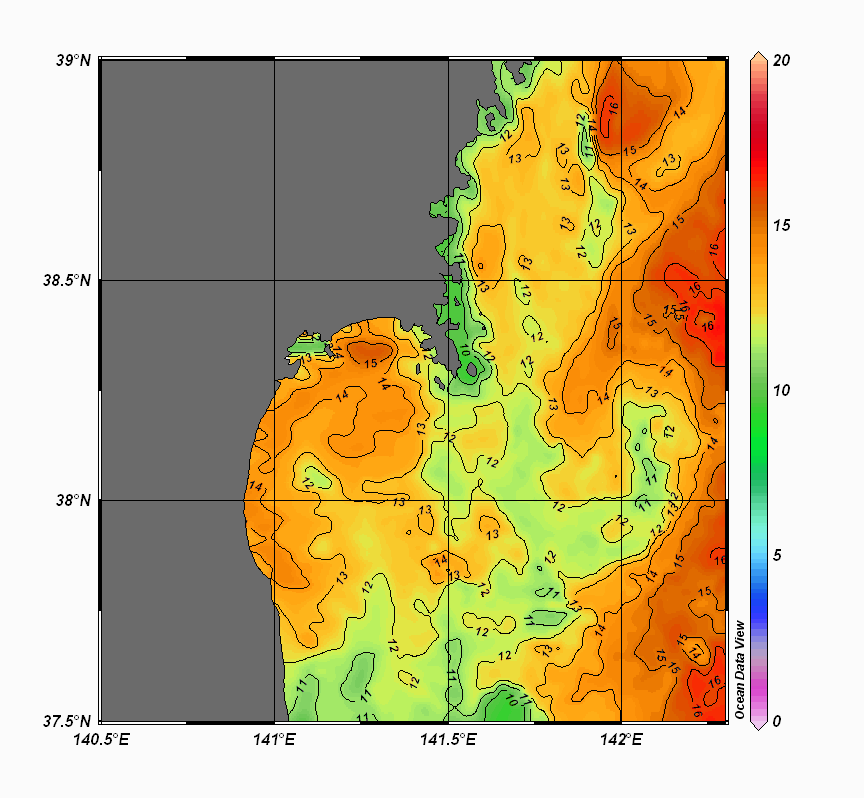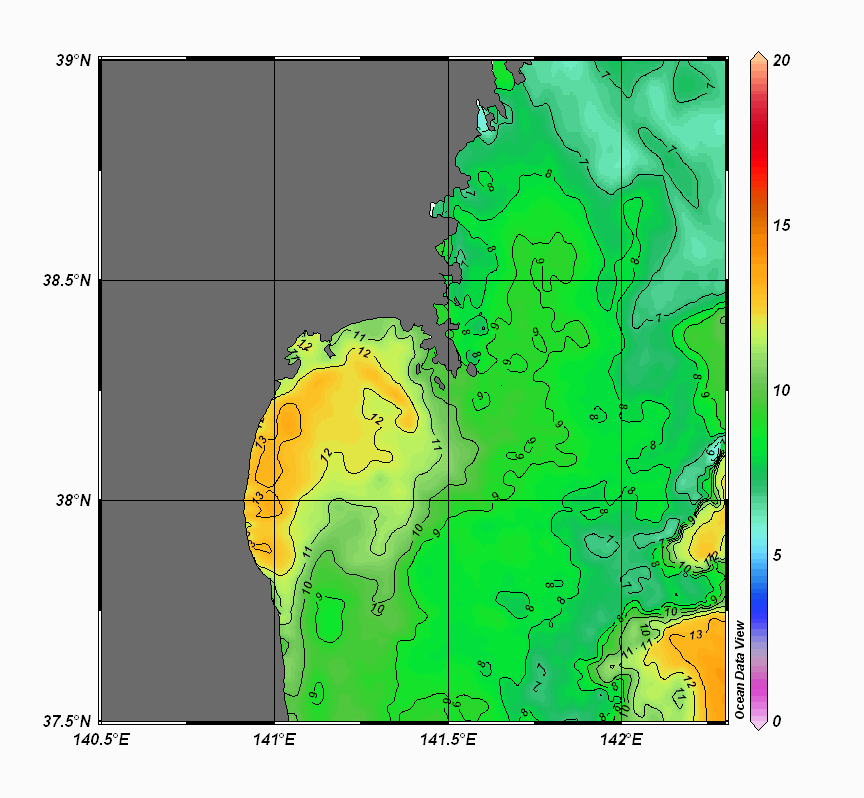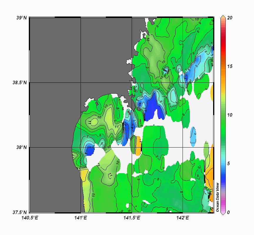 2008年4月から2025年8月までの、仙台湾付近表面水温を掲載しています。