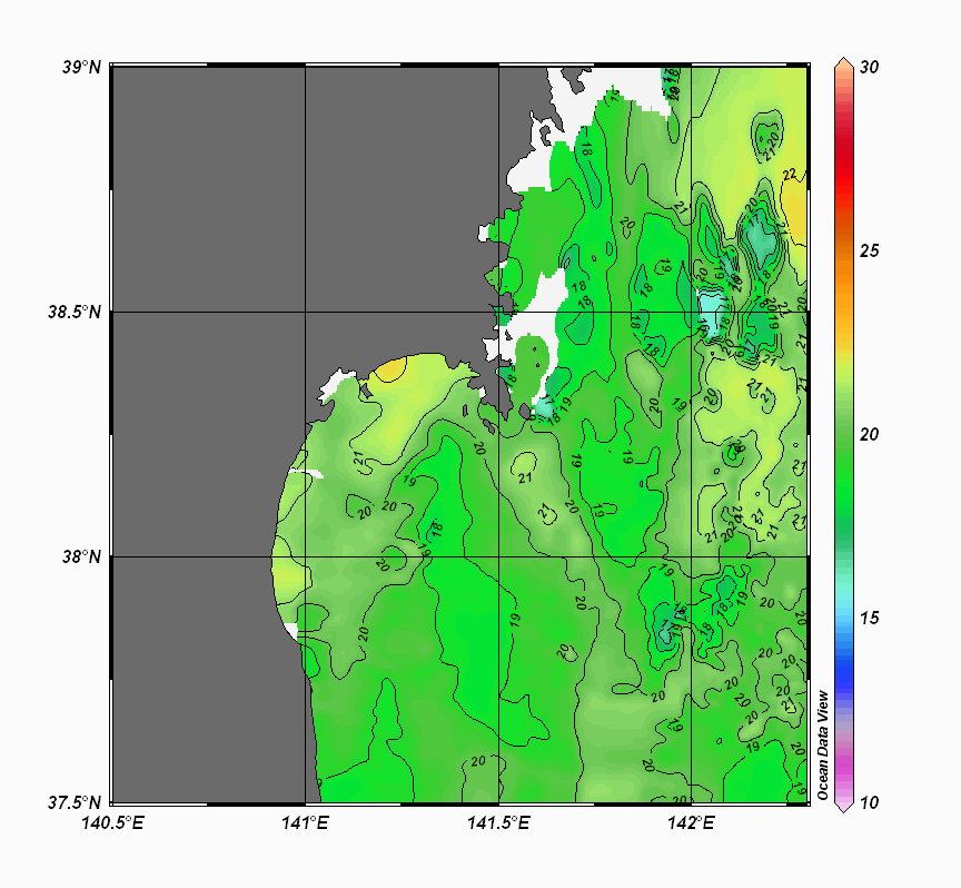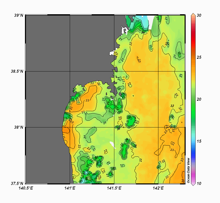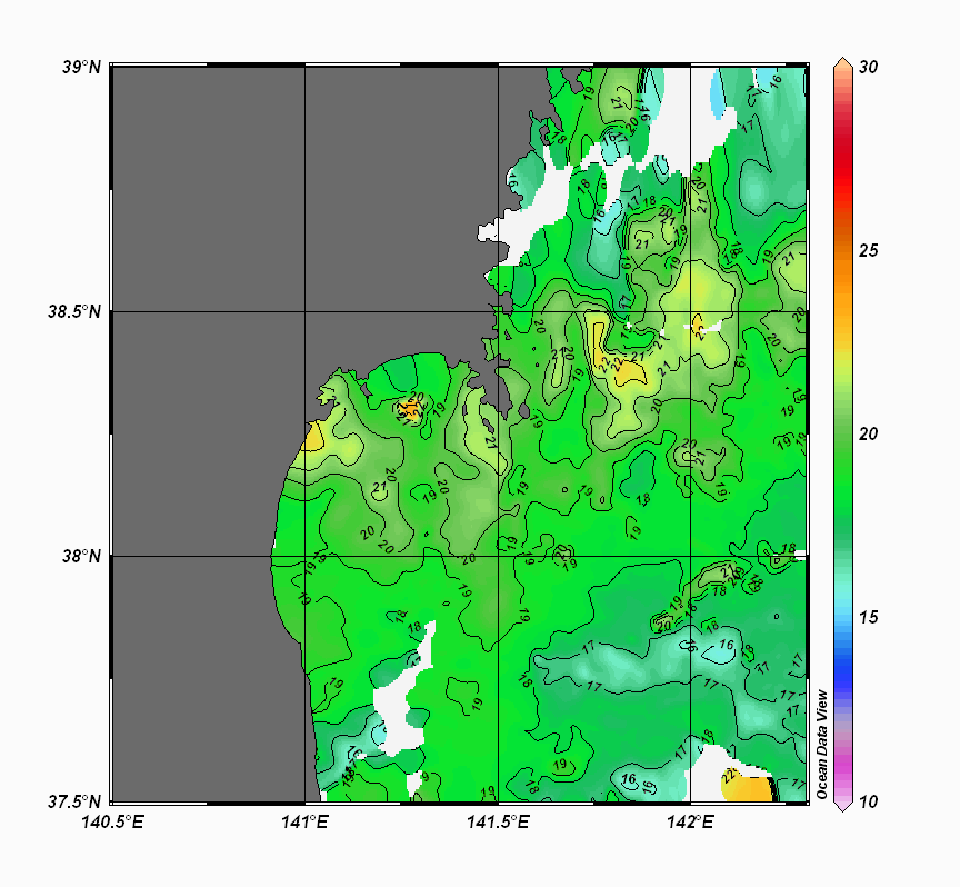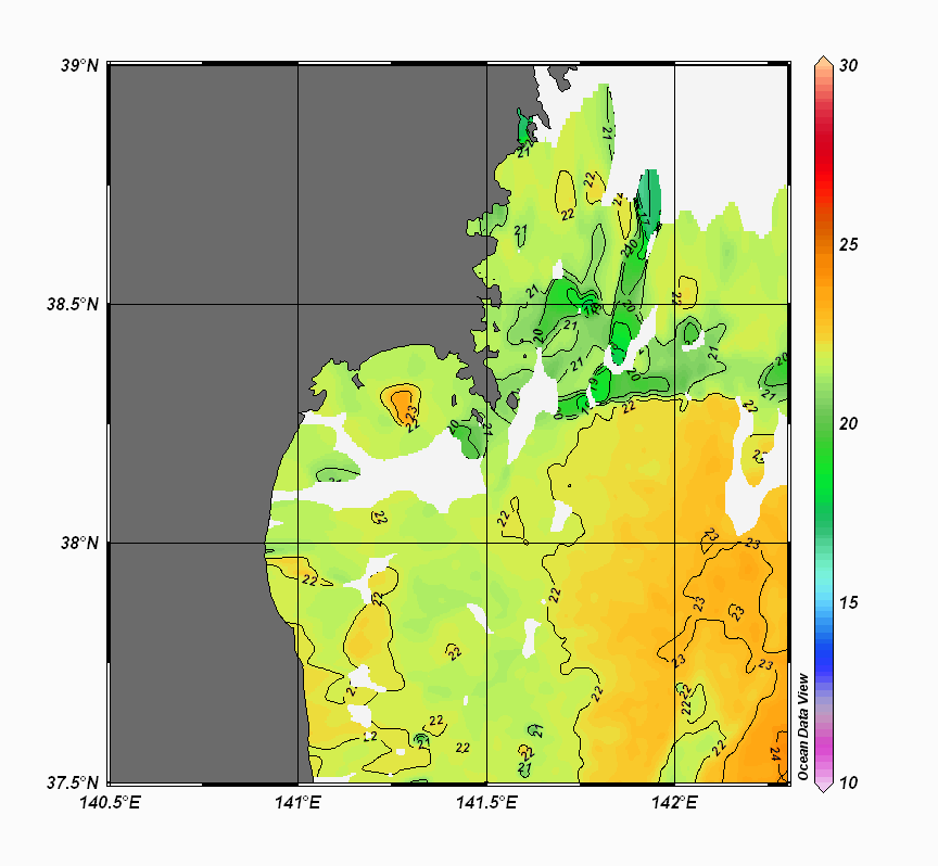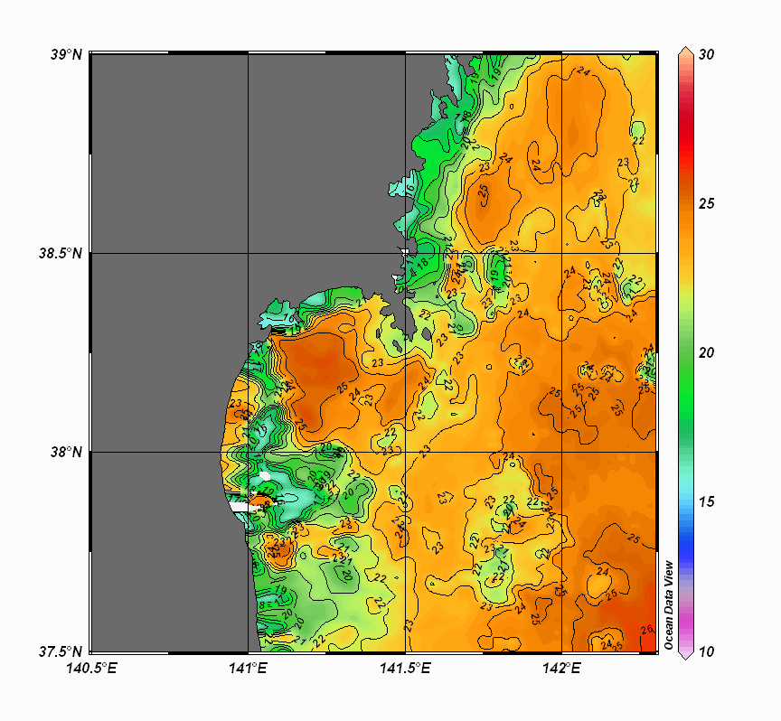 2008年4月から2025年8月までの、仙台湾付近表面水温を掲載しています。