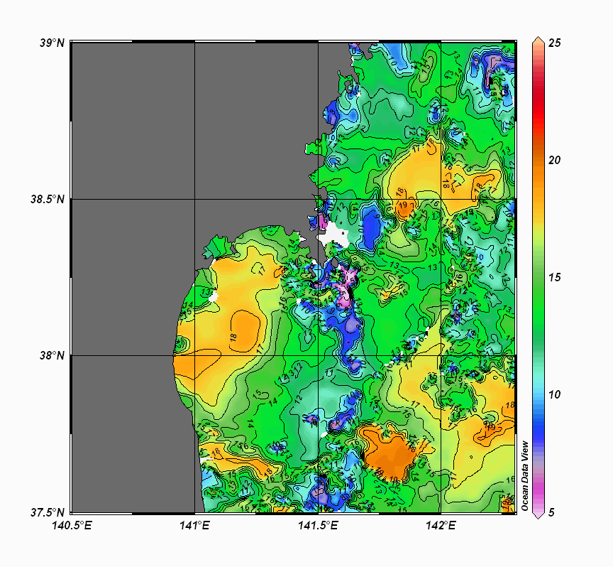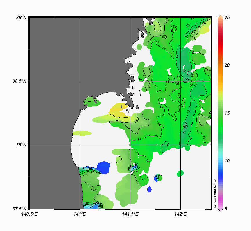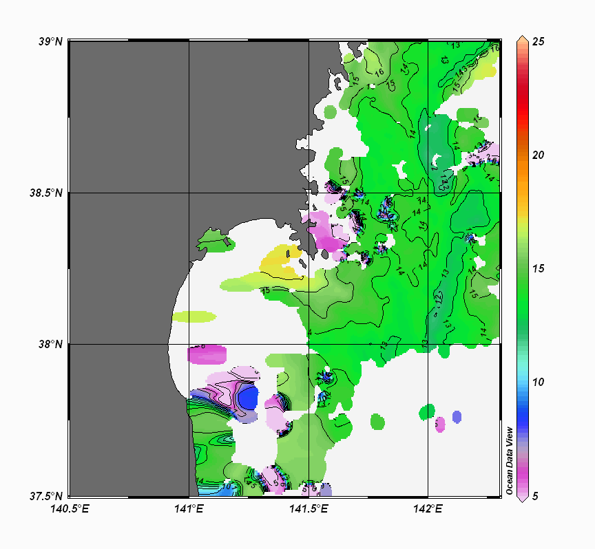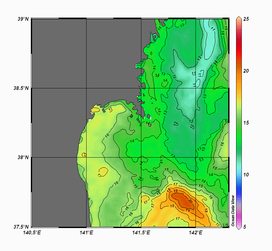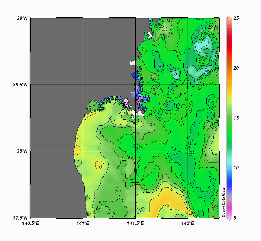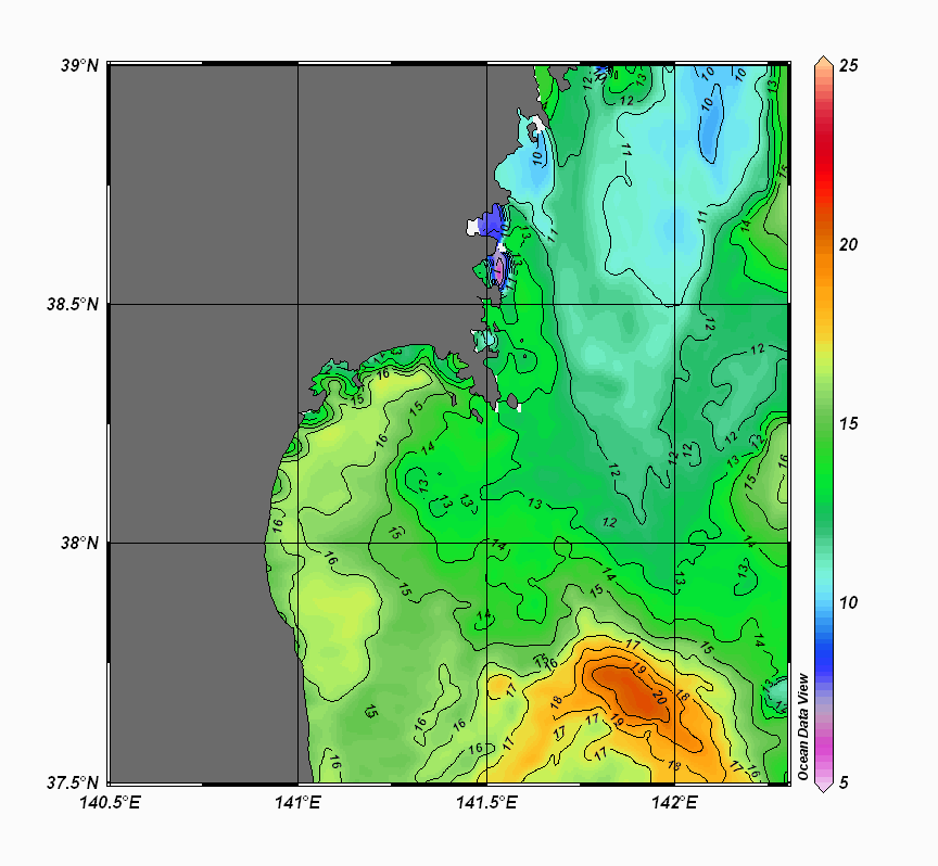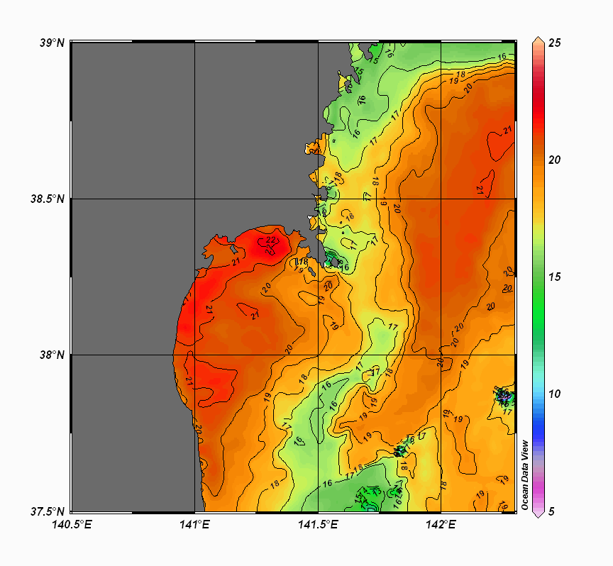 2008年4月から2025年8月までの、仙台湾付近表面水温を掲載しています。