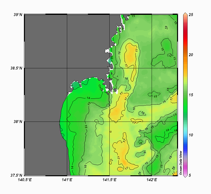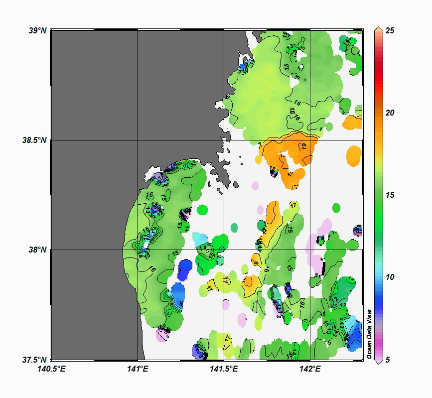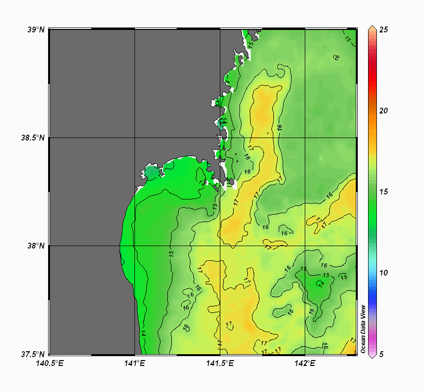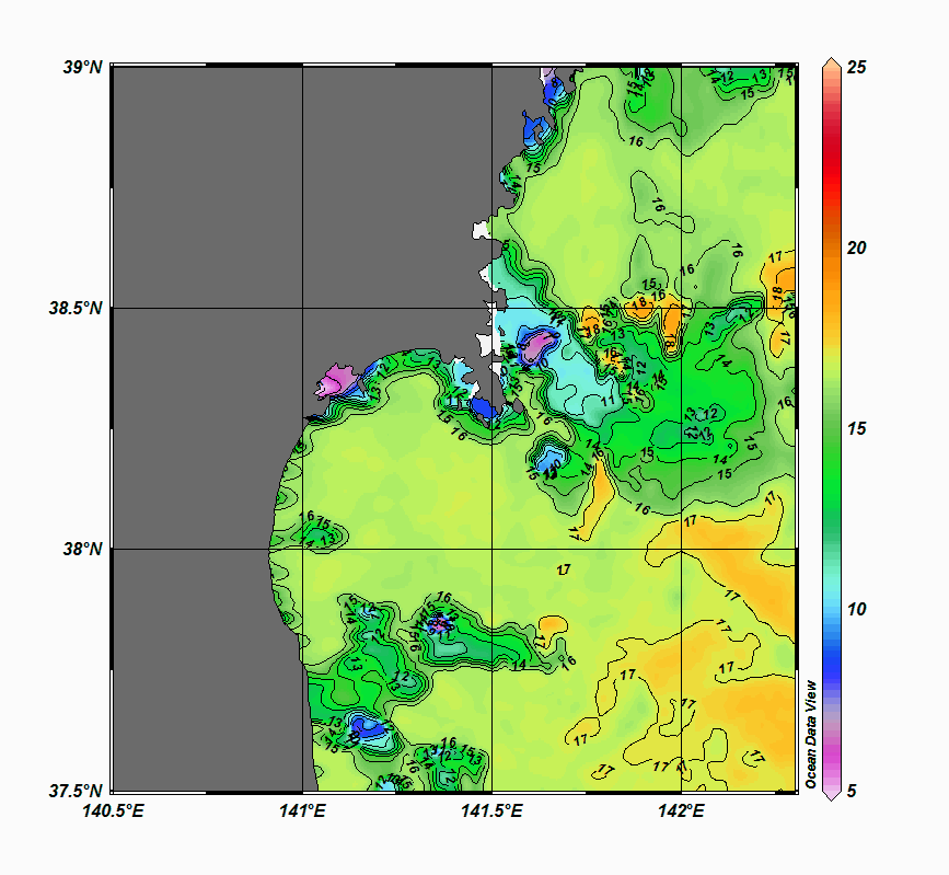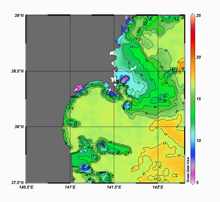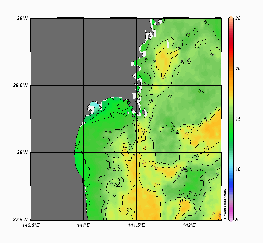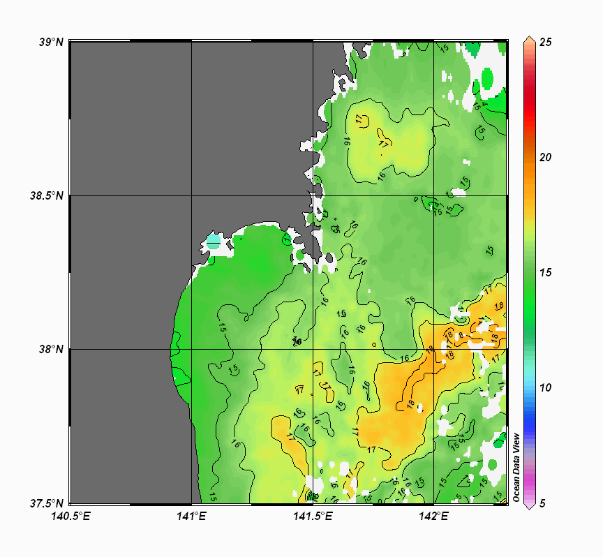 2008年4月から2025年8月までの、仙台湾付近表面水温を掲載しています。