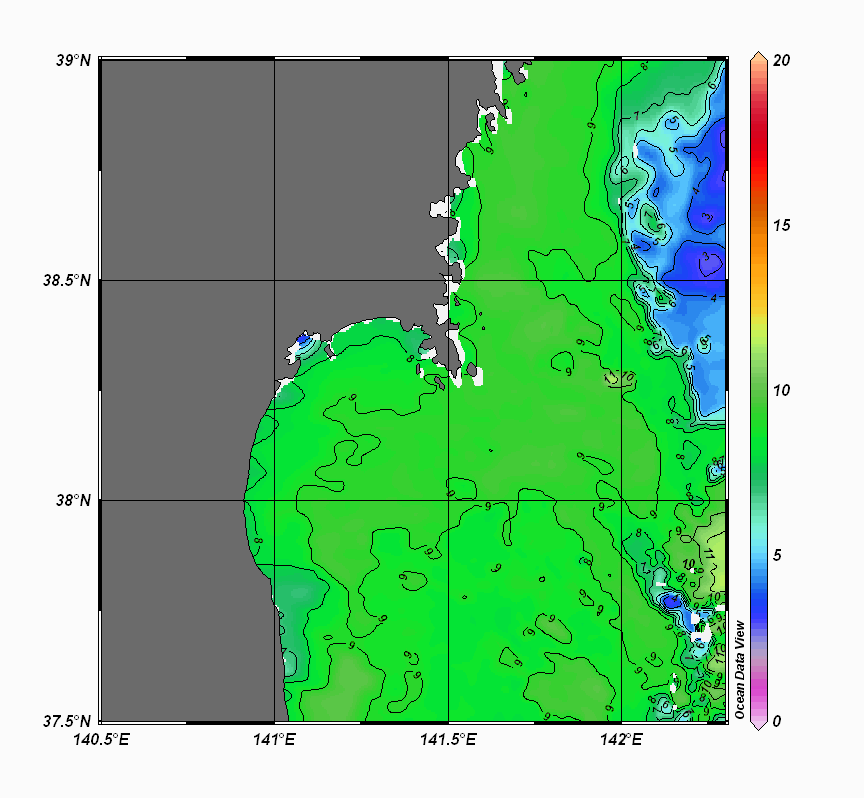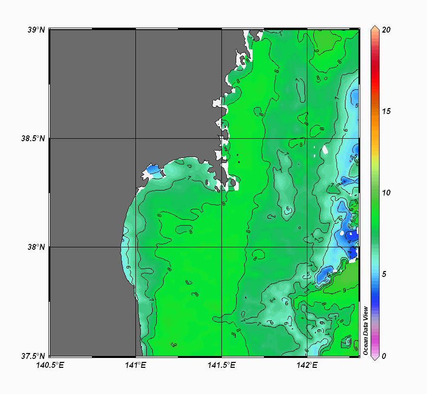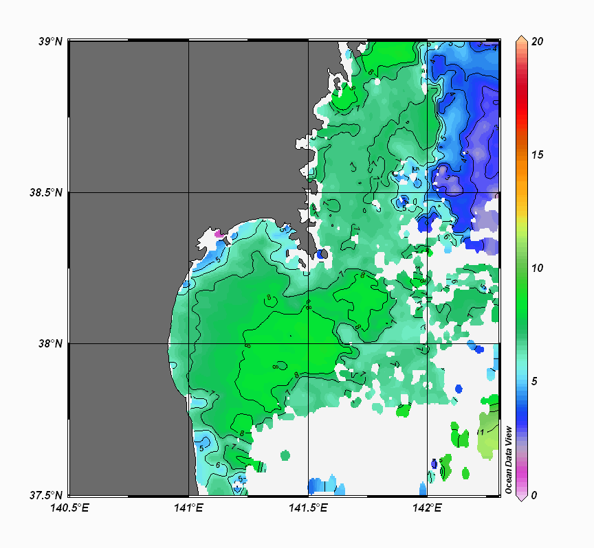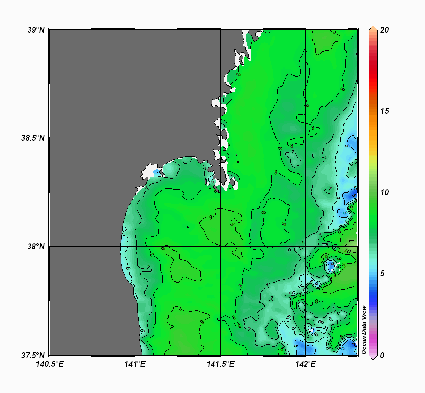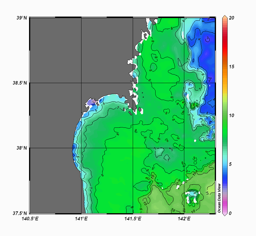 2008年4月から2025年8月までの、仙台湾付近表面水温を掲載しています。