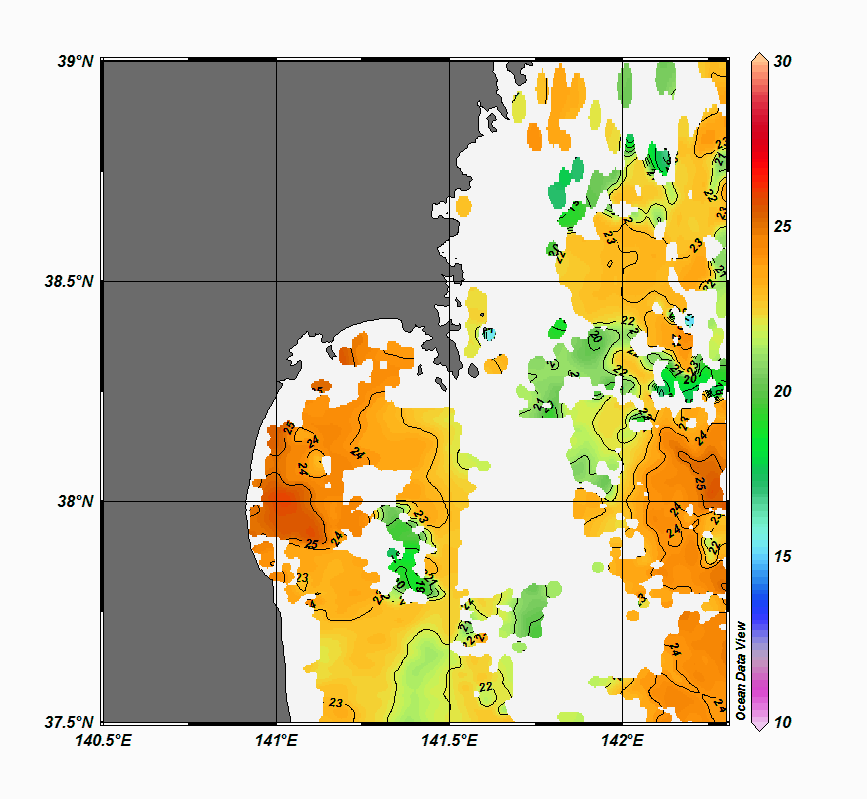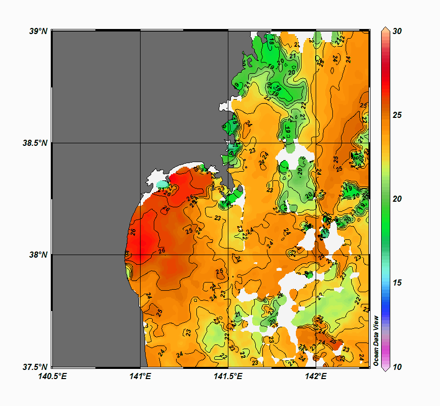 2008年4月から2025年8月までの、仙台湾付近表面水温を掲載しています。