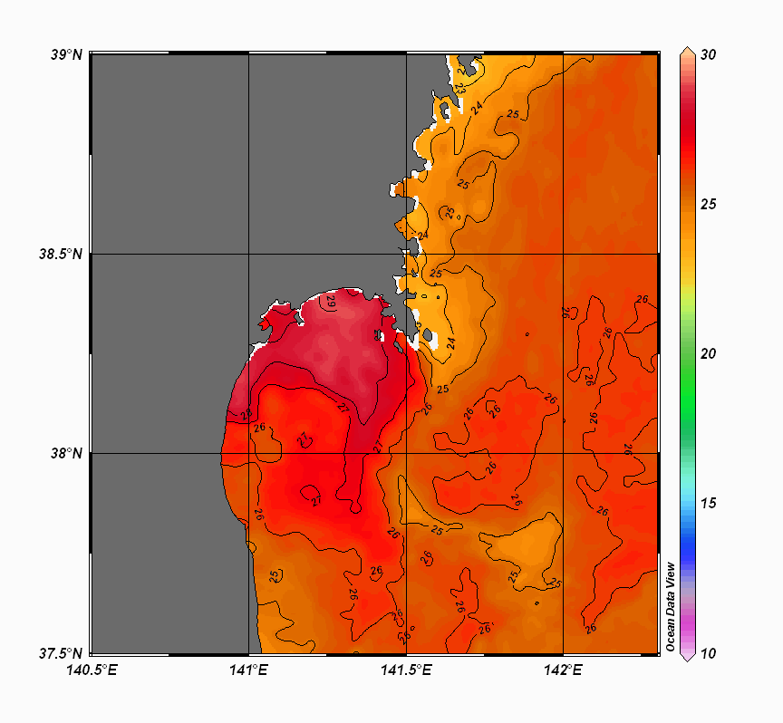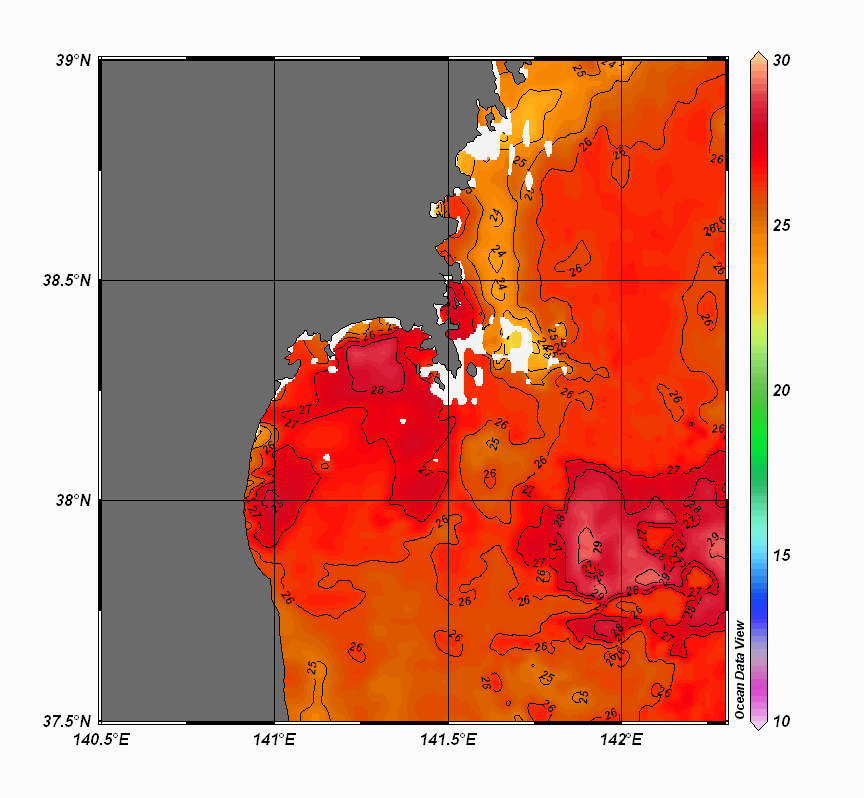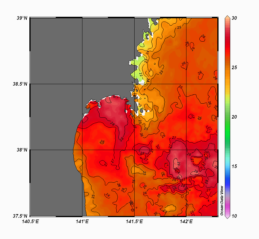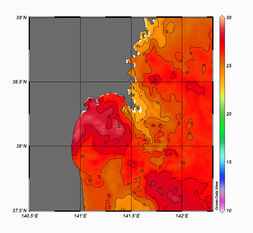 仙台湾付近表面水温(過去のデータ)