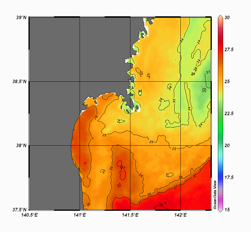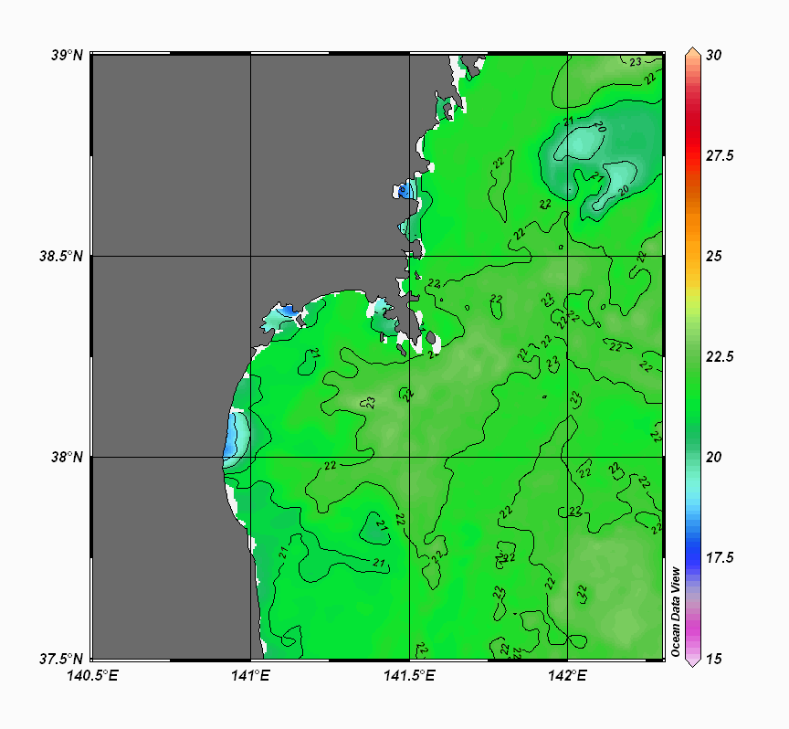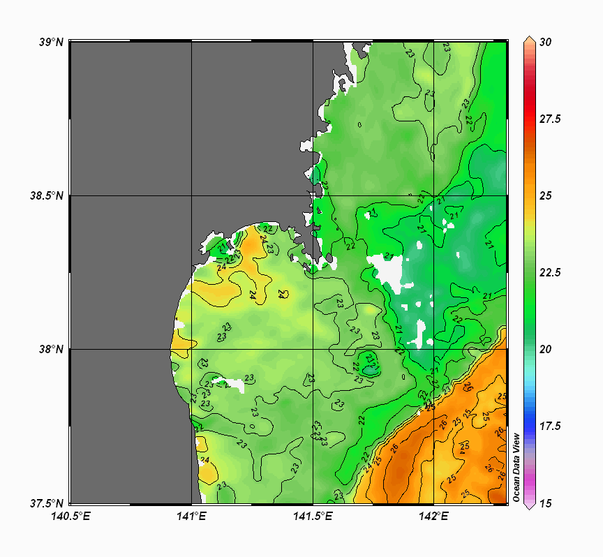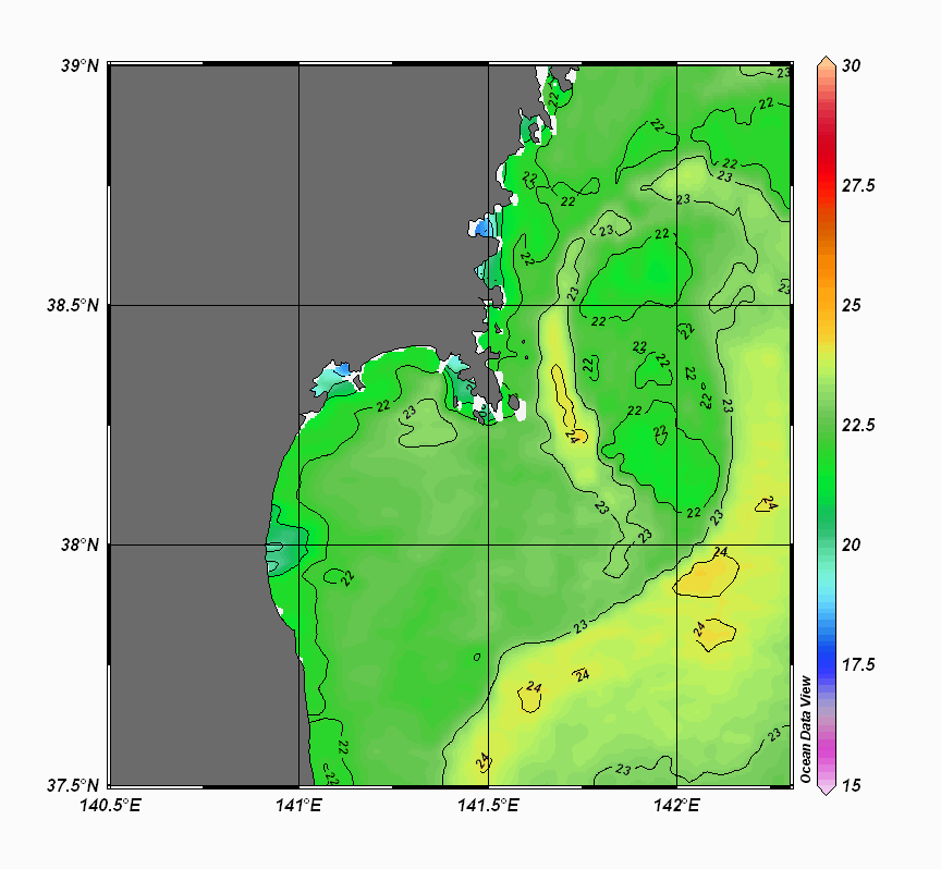 仙台湾付近表面水温(過去のデータ)