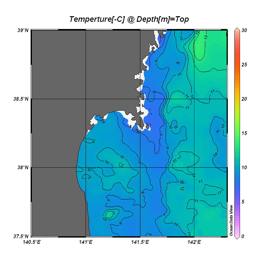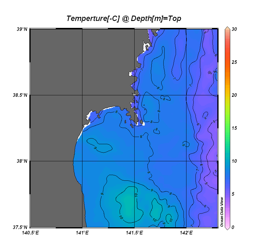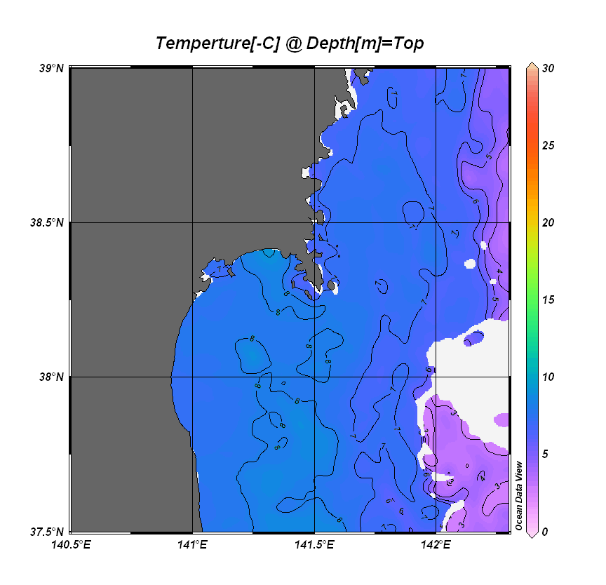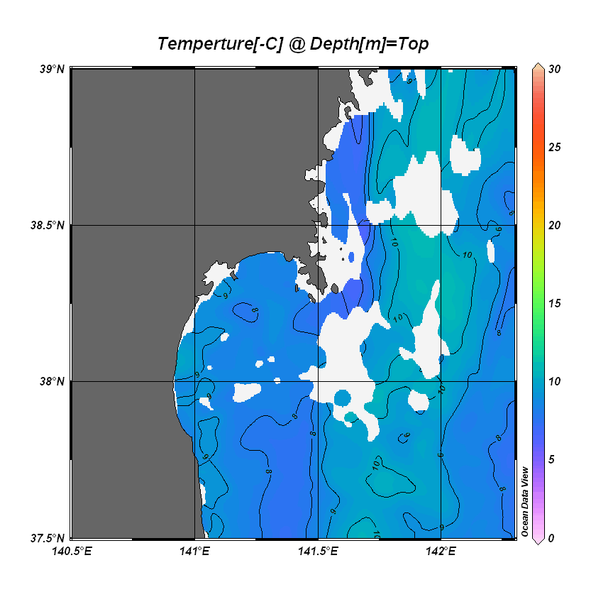 2008年4月から2025年8月までの、仙台湾付近表面水温を掲載しています。