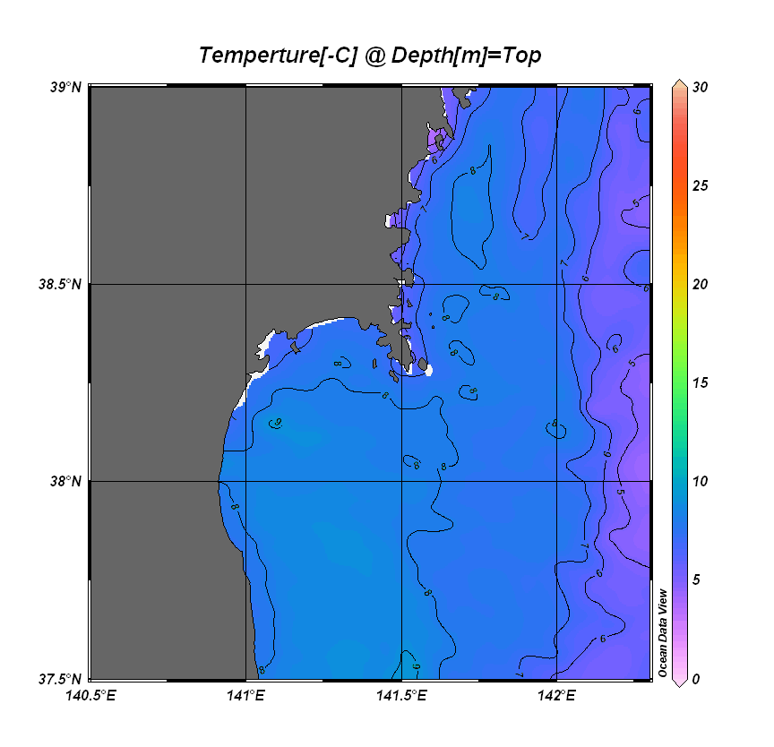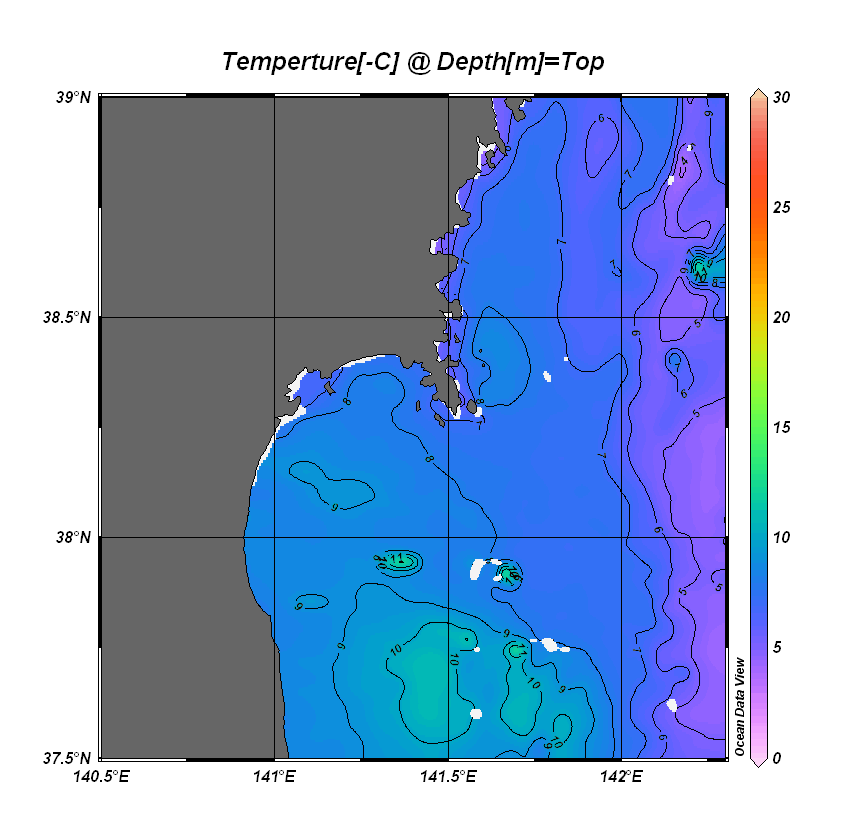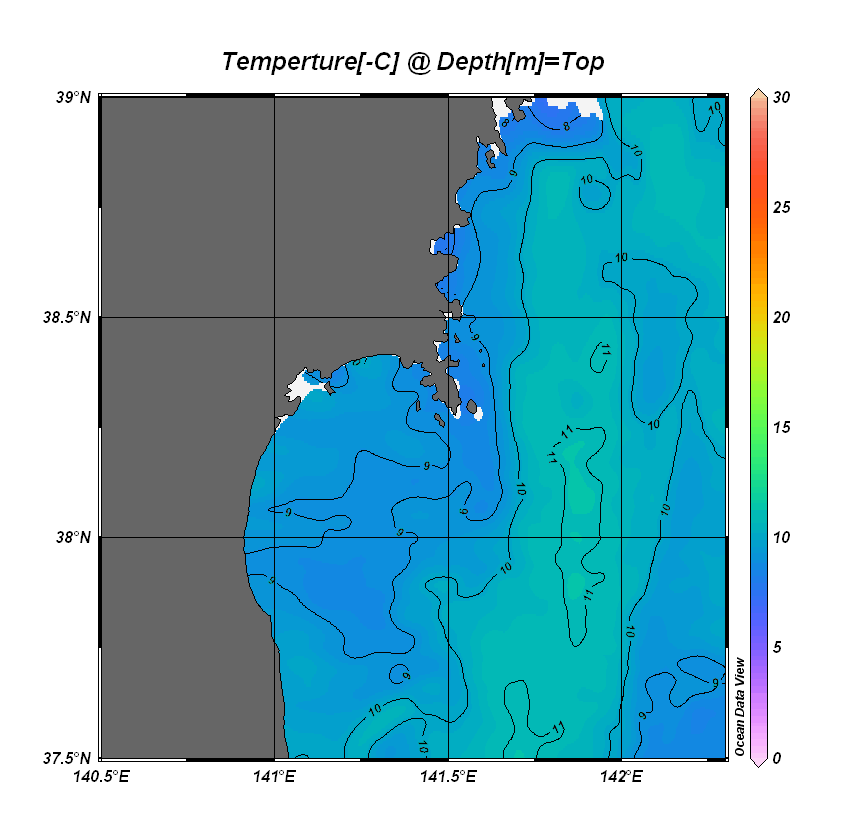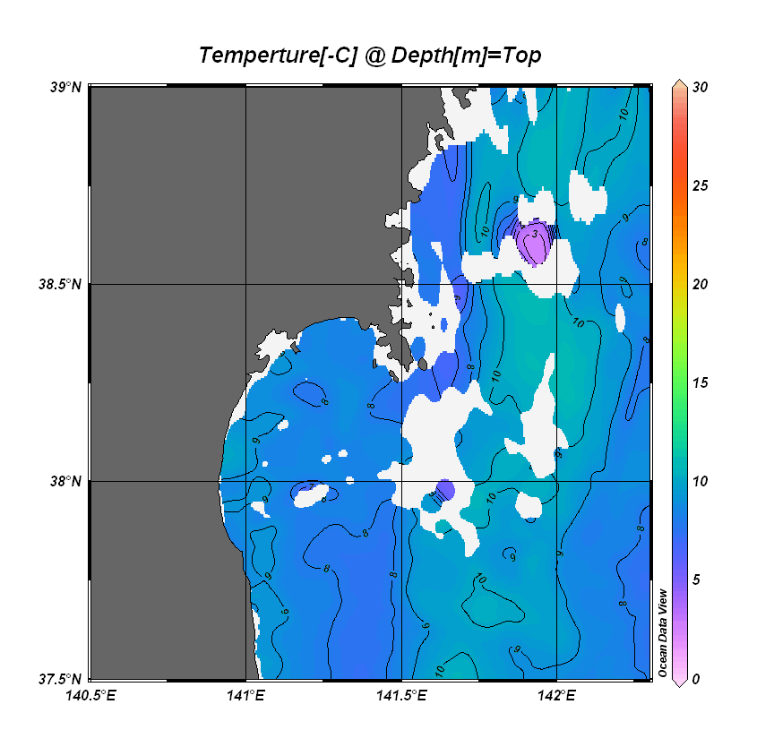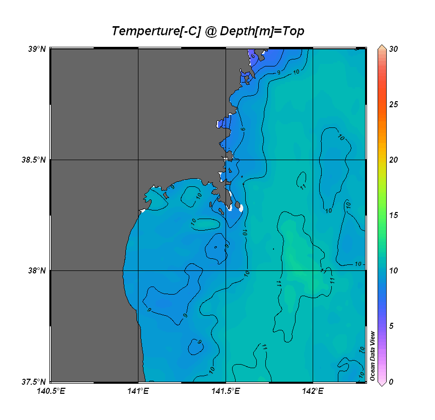 2008年4月から2025年8月までの、仙台湾付近表面水温を掲載しています。