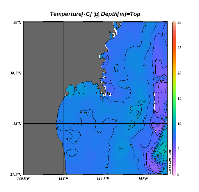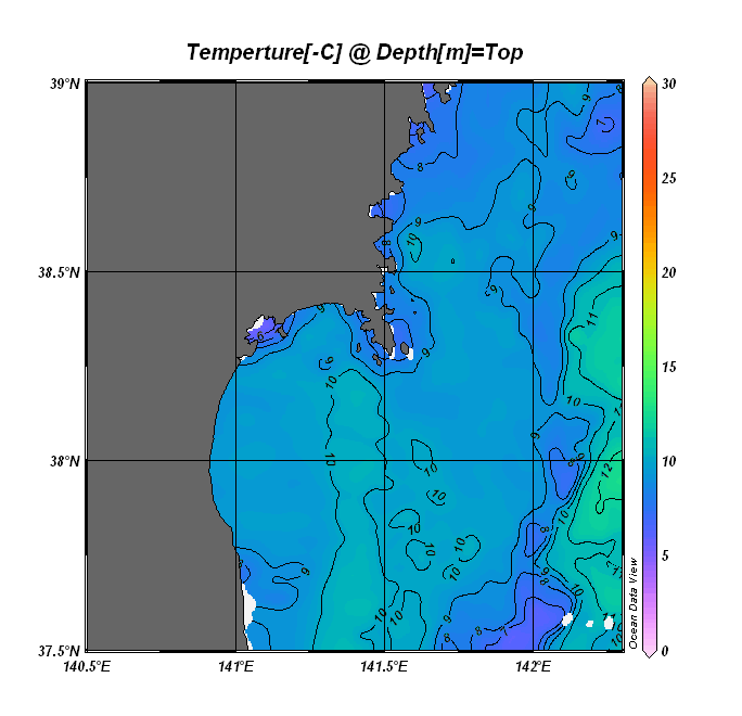 2008年4月から2025年8月までの、仙台湾付近表面水温を掲載しています。
