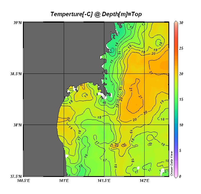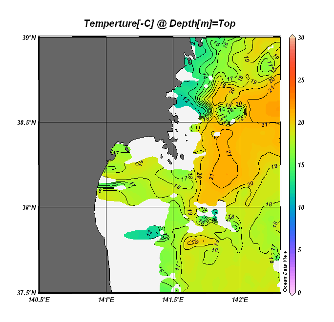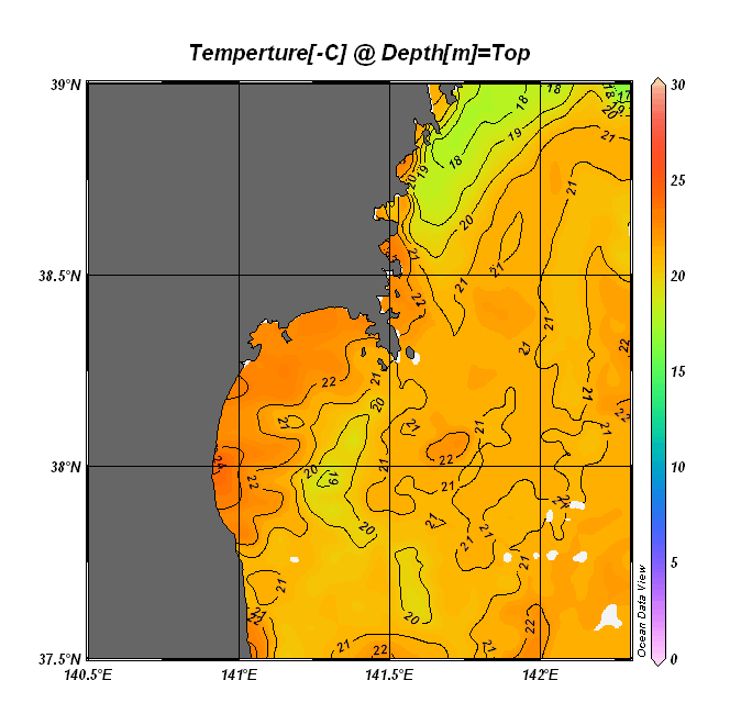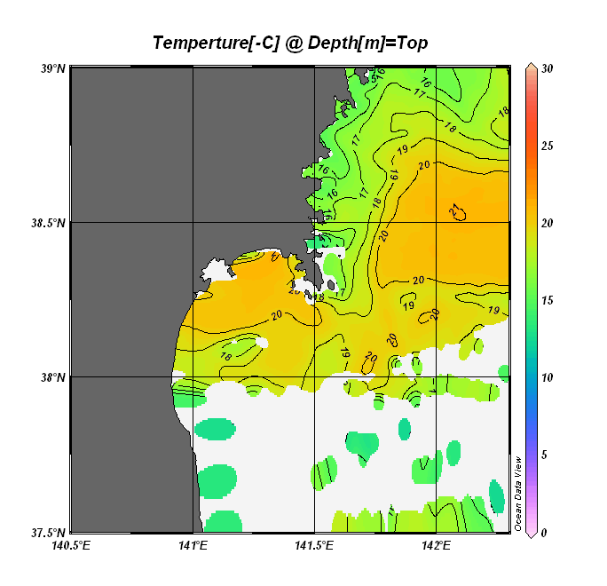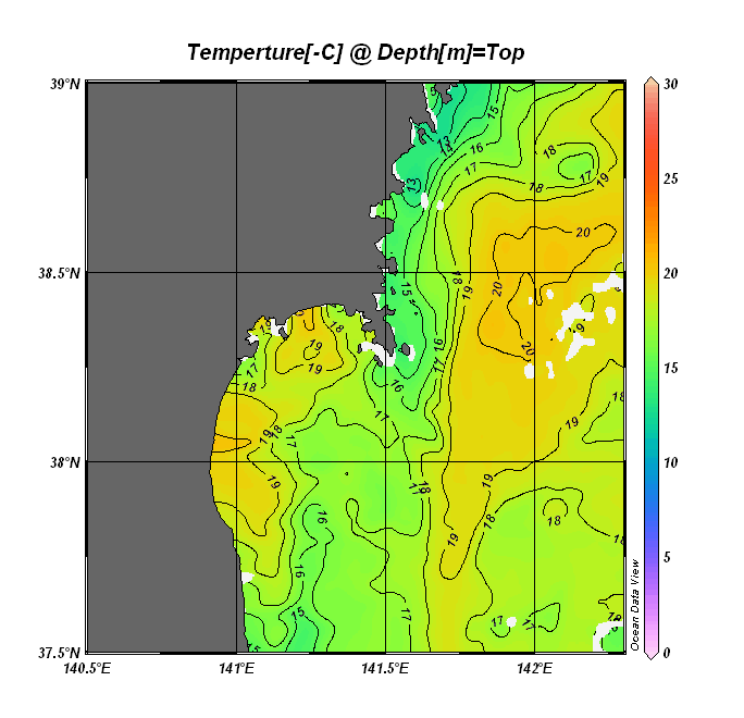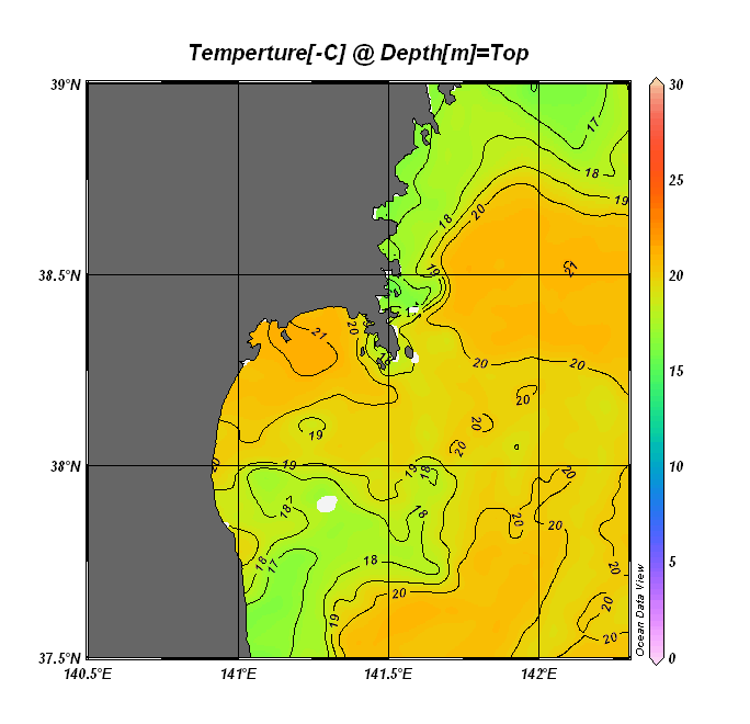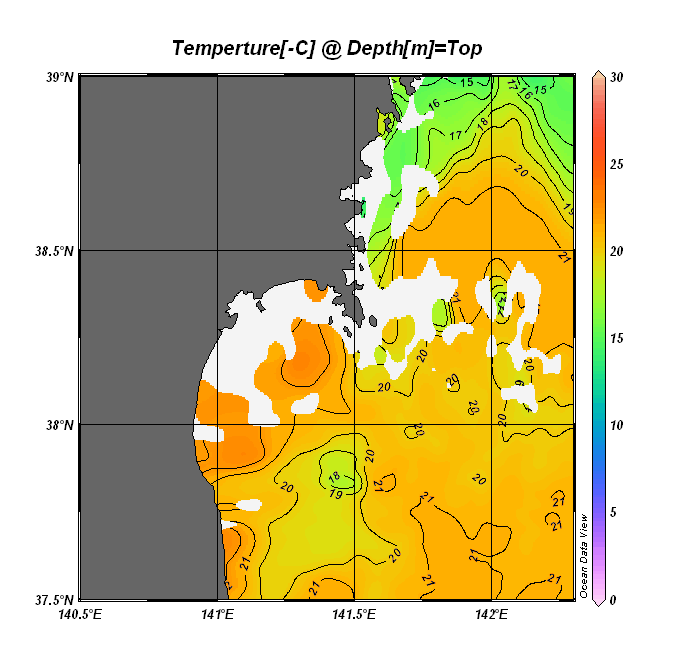 2008年4月から2025年8月までの、仙台湾付近表面水温を掲載しています。