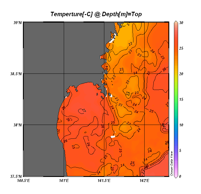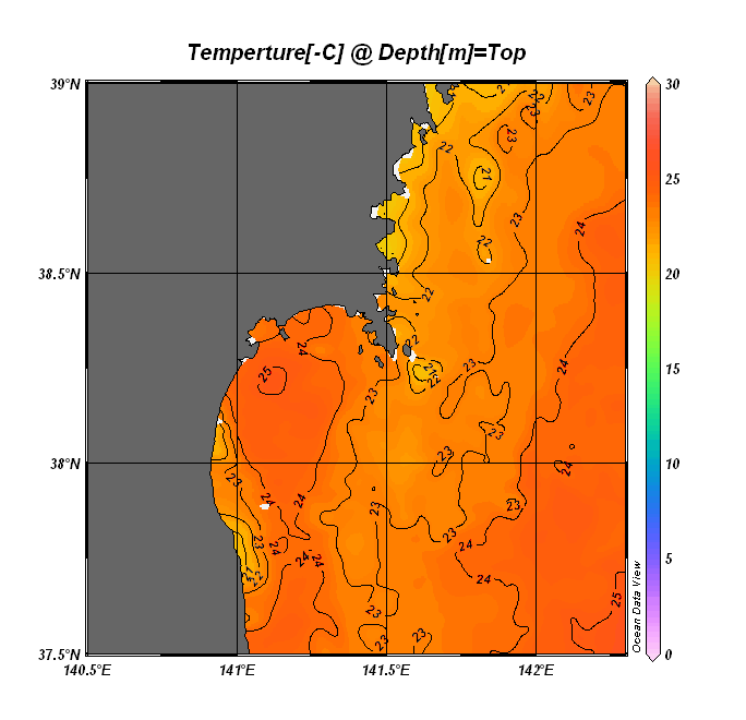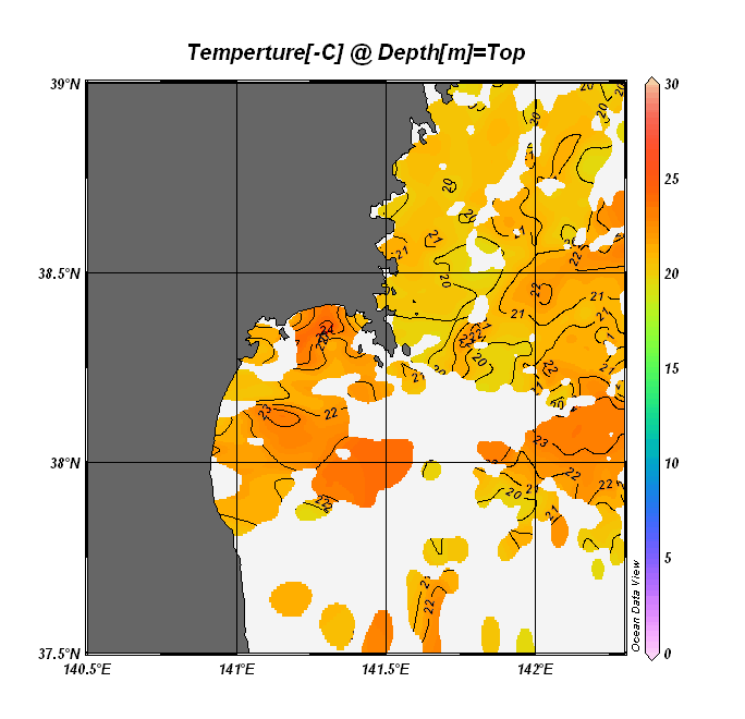 仙台湾付近表面水温(過去のデータ)
