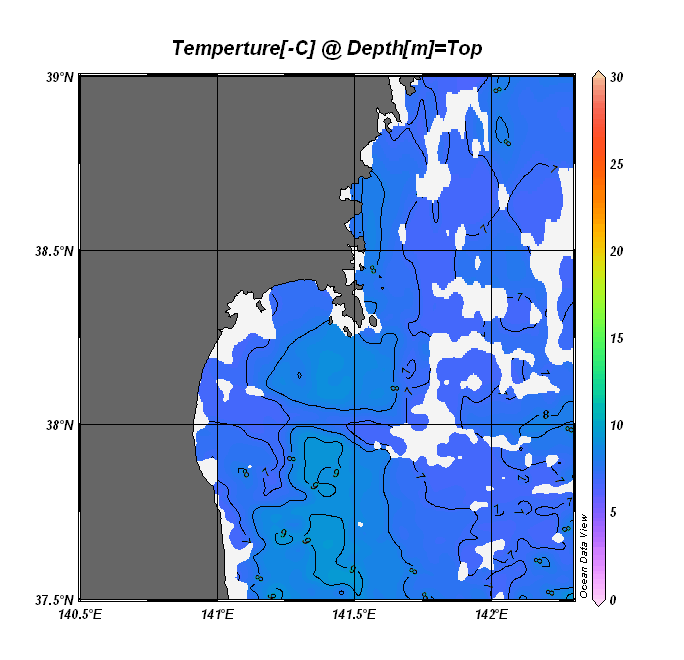 2008年4月から2025年8月までの、仙台湾付近表面水温を掲載しています。