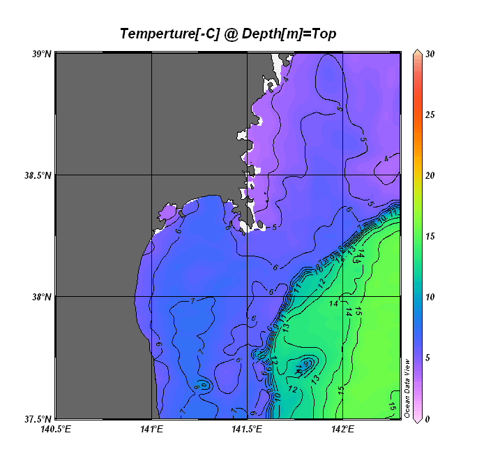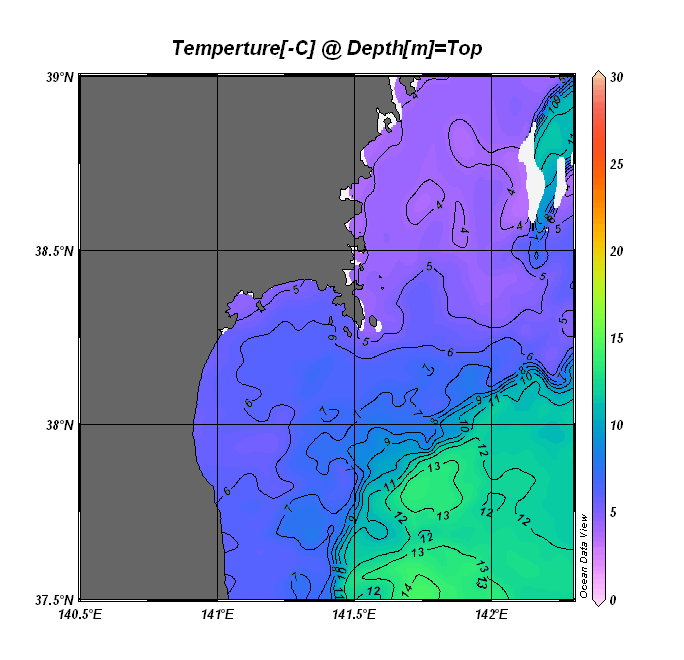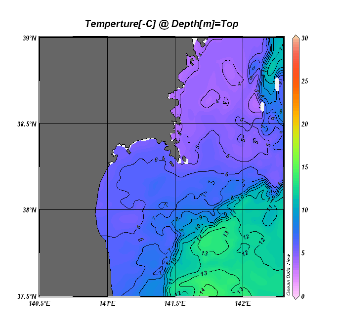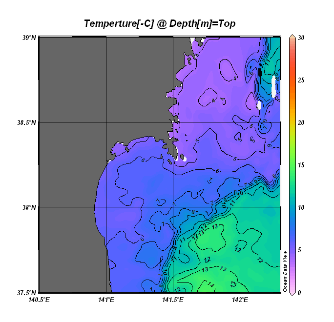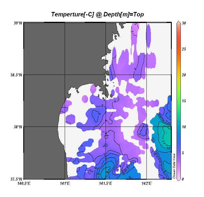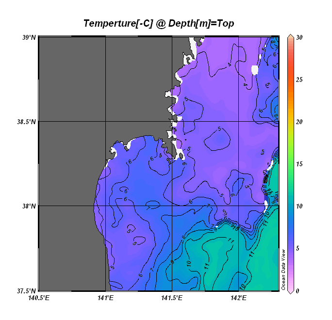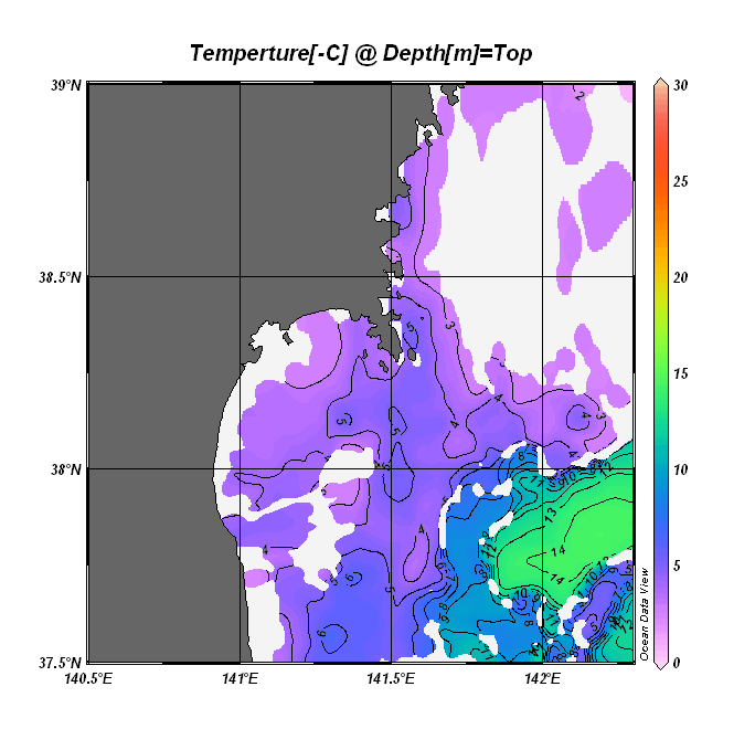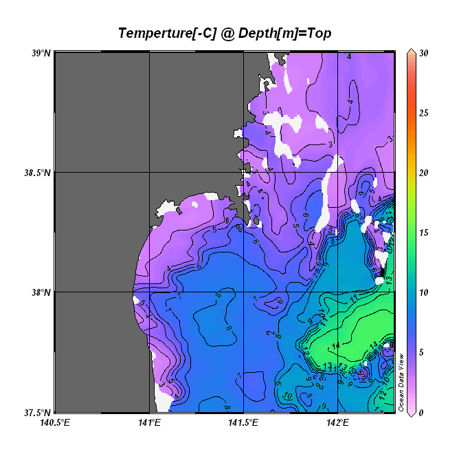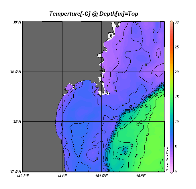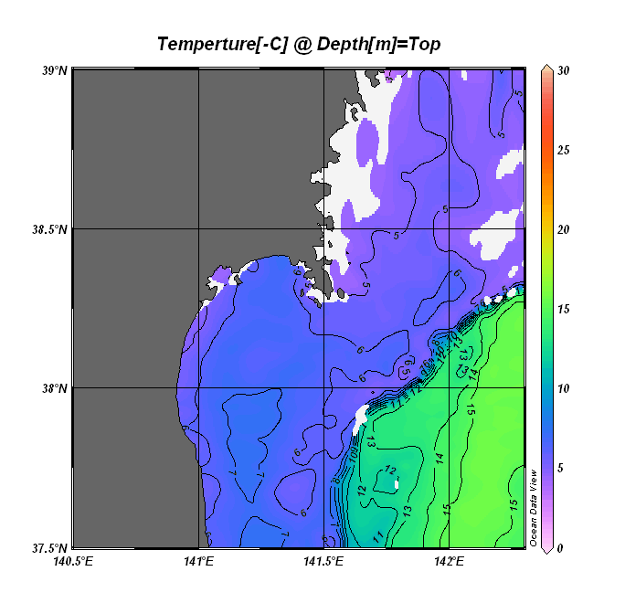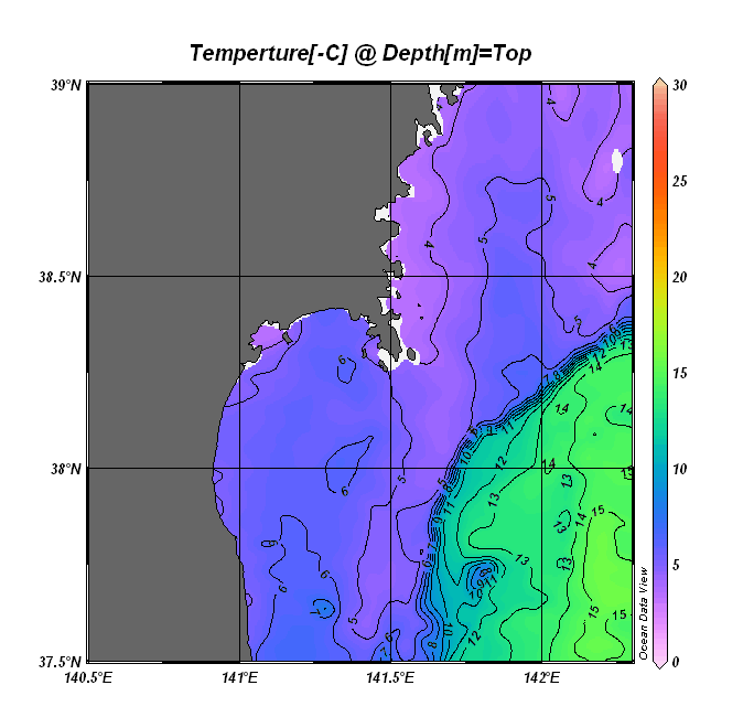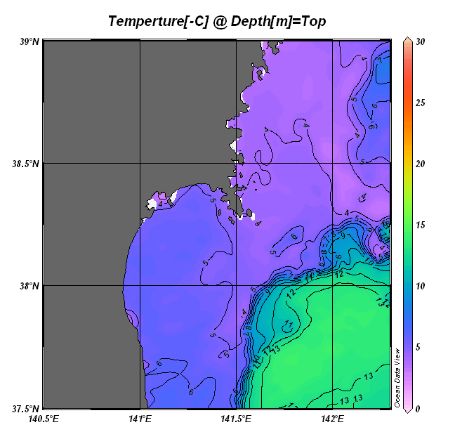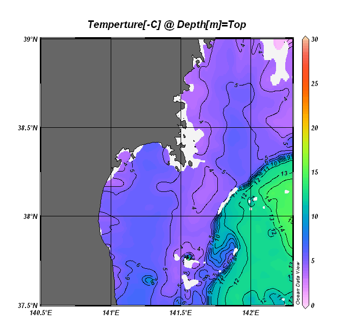 仙台湾付近表面水温(過去のデータ)