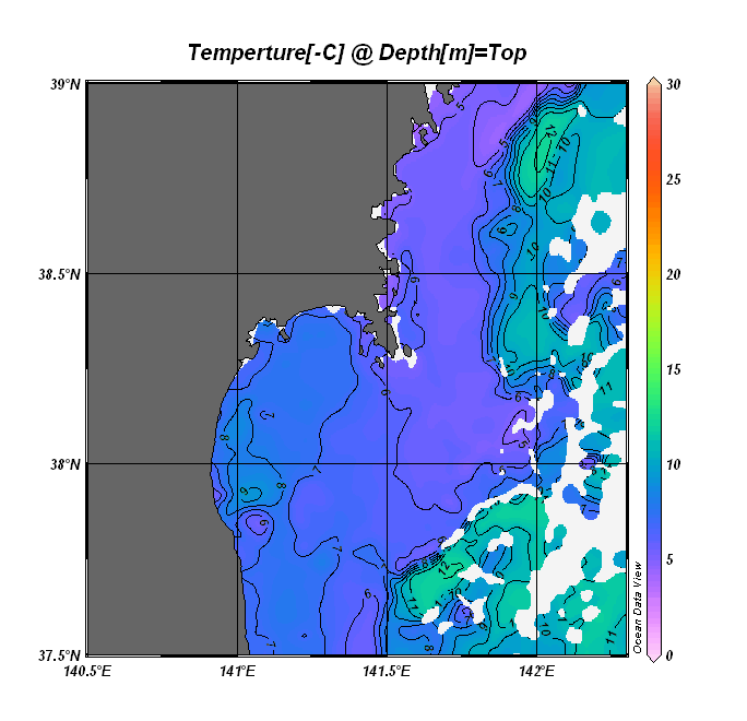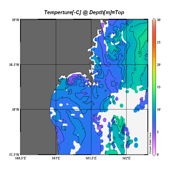 2008年4月から2025年8月までの、仙台湾付近表面水温を掲載しています。