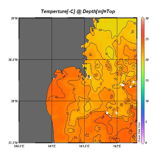 仙台湾付近表面水温(過去のデータ)