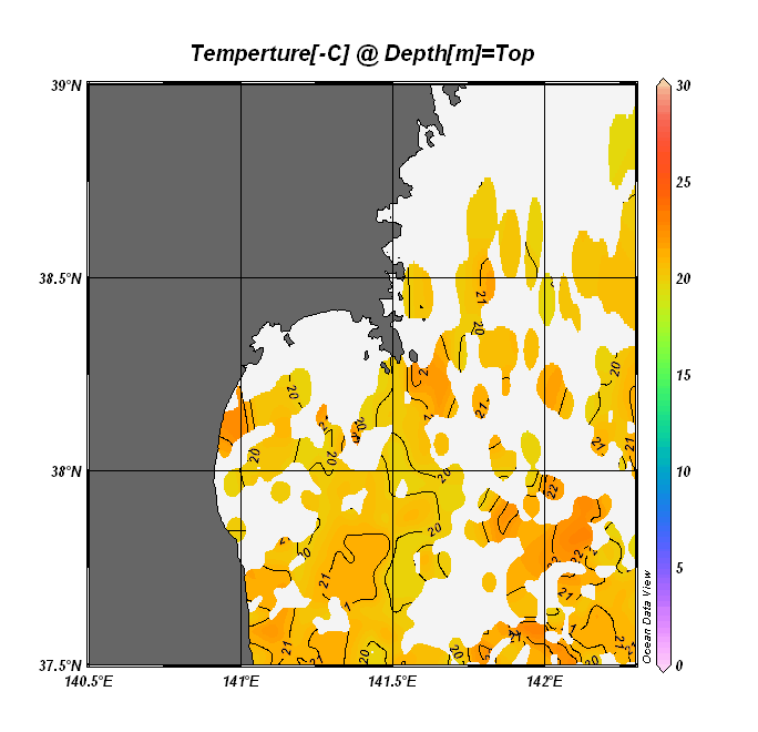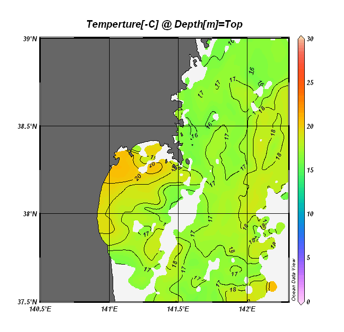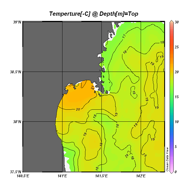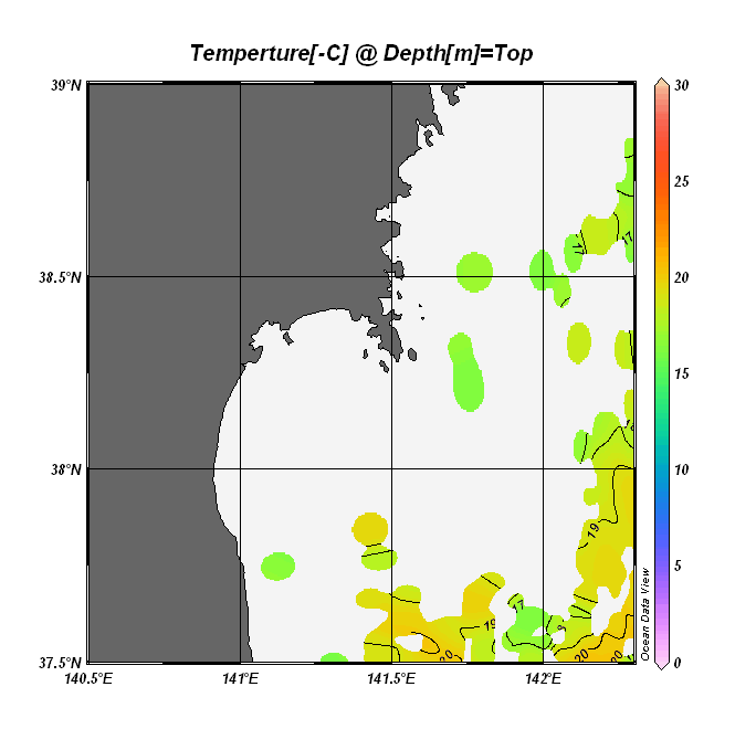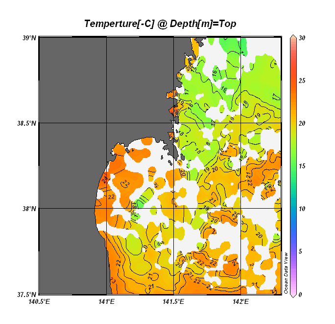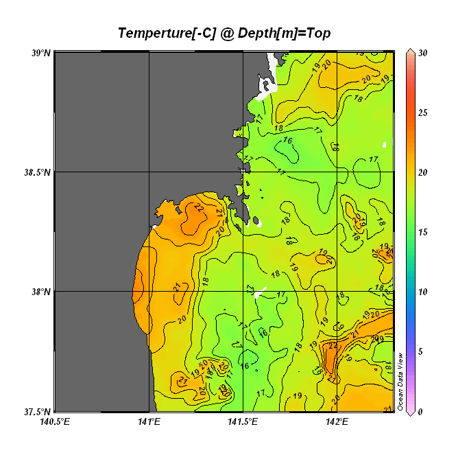 2008年4月から2025年8月までの、仙台湾付近表面水温を掲載しています。