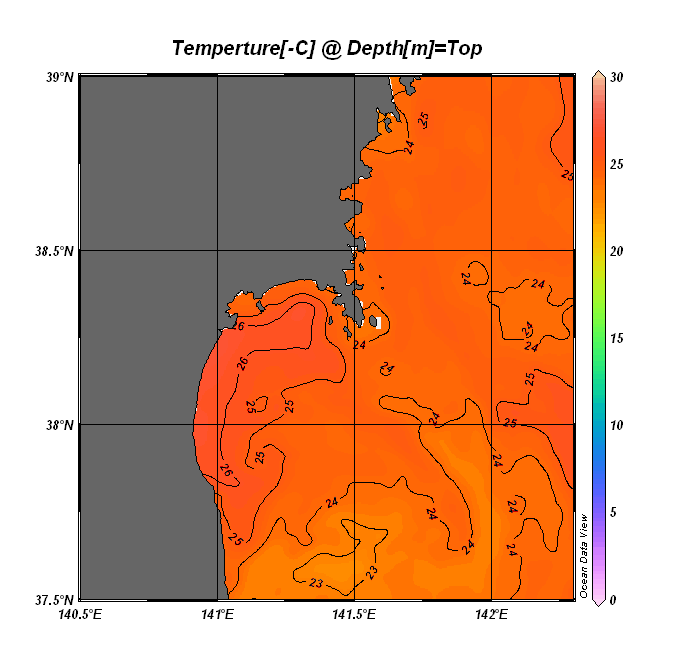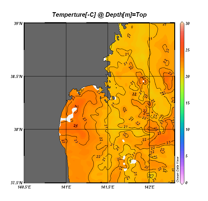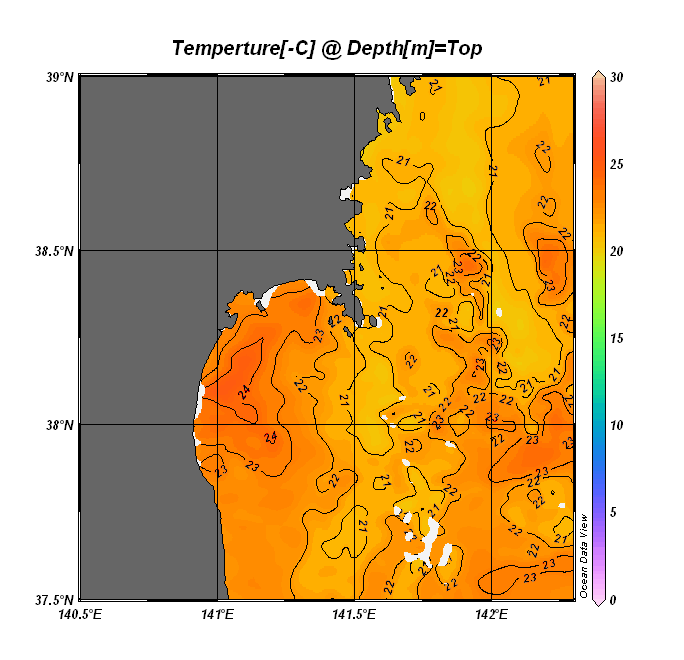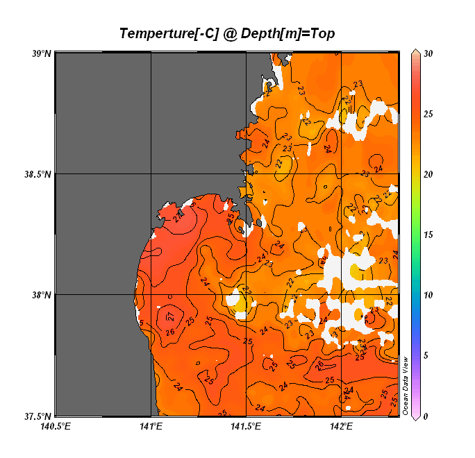 2008年4月から2025年8月までの、仙台湾付近表面水温を掲載しています。