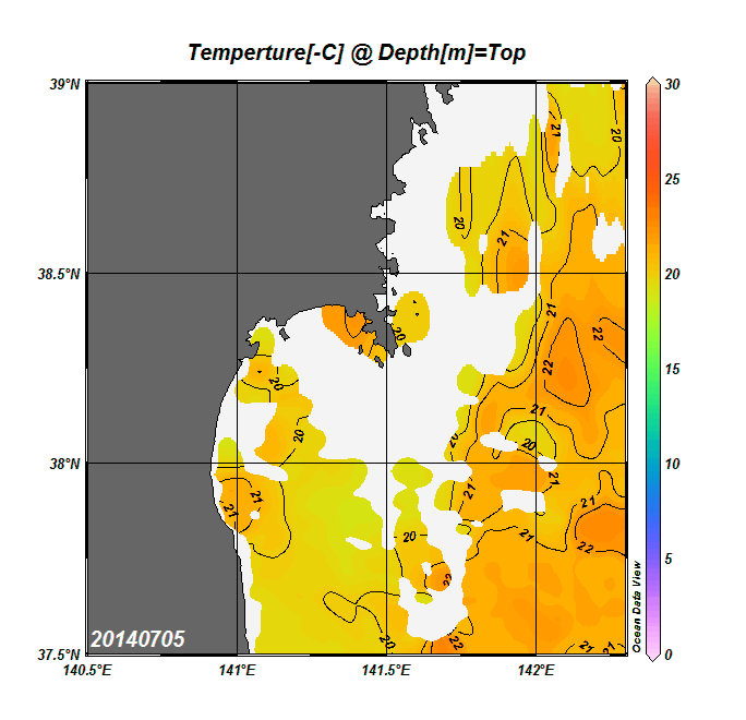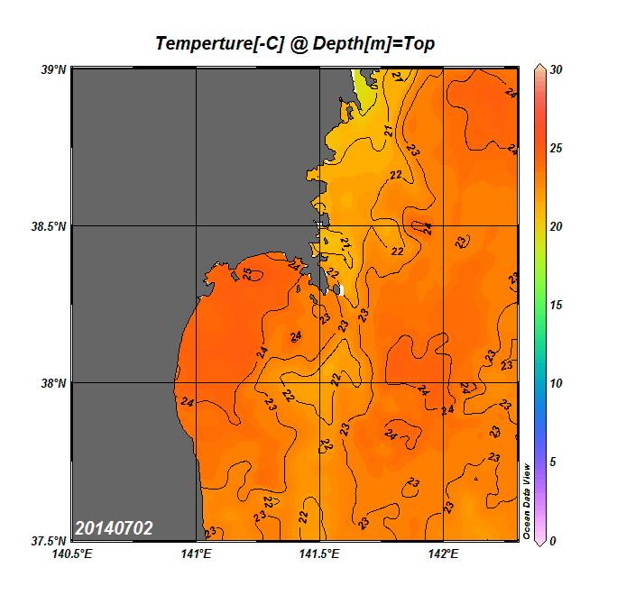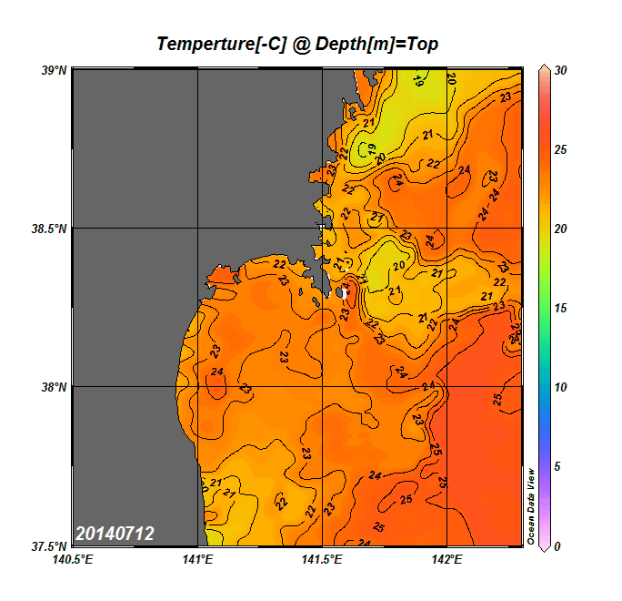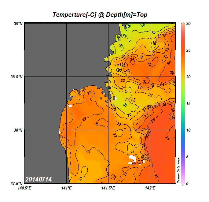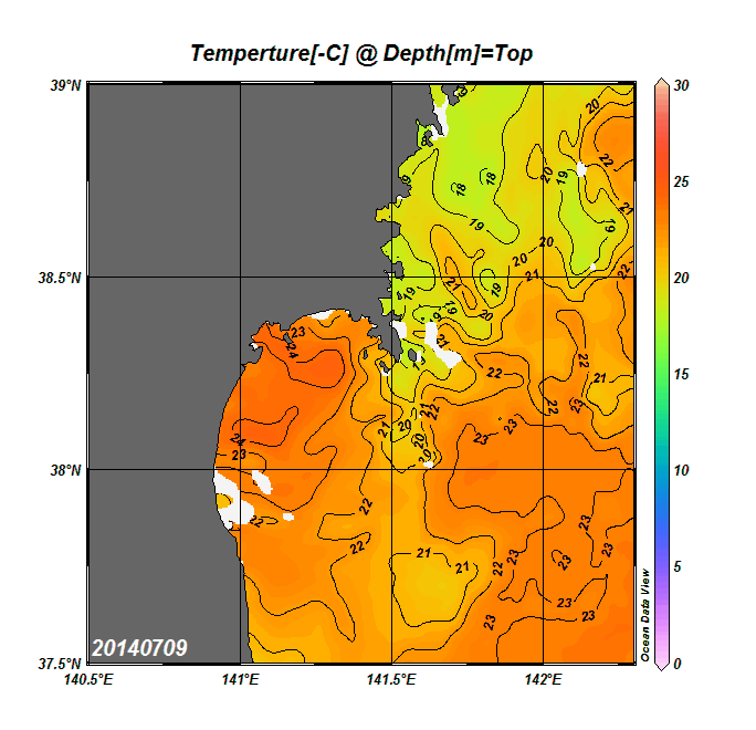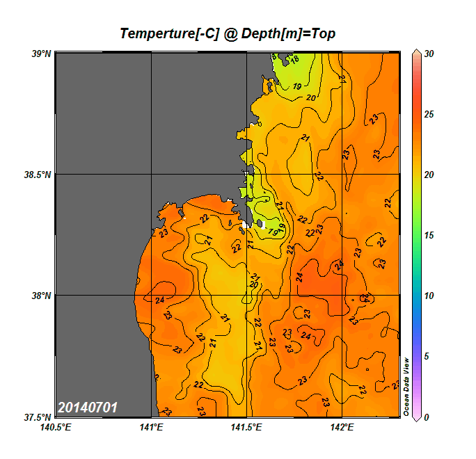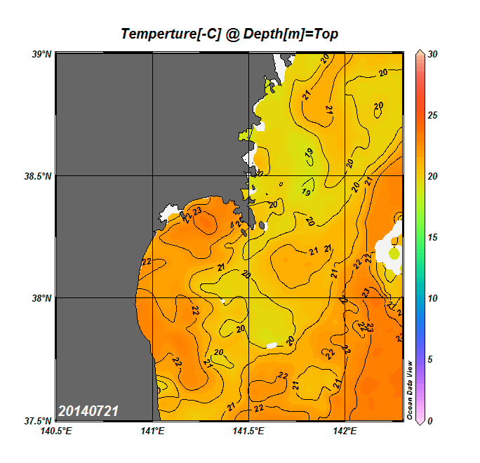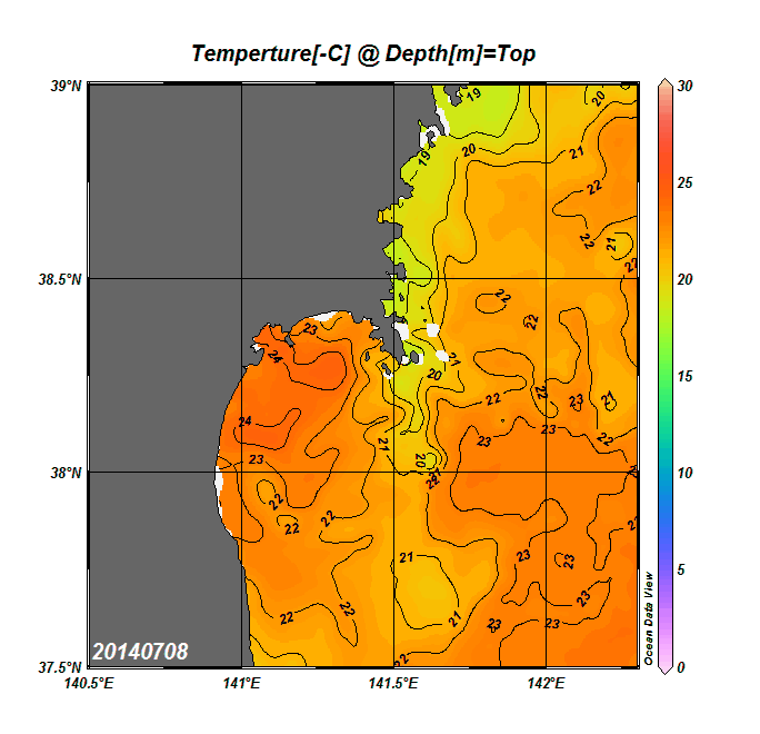 2008年4月から2025年8月までの、仙台湾付近表面水温を掲載しています。