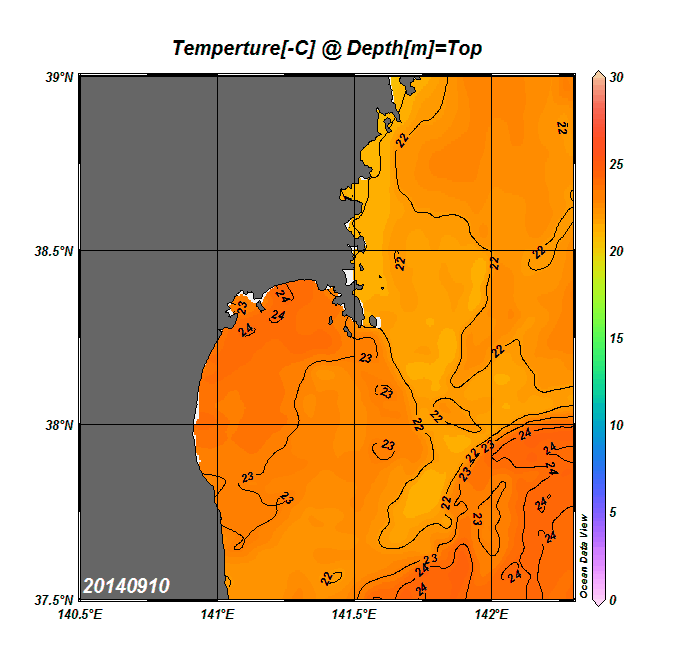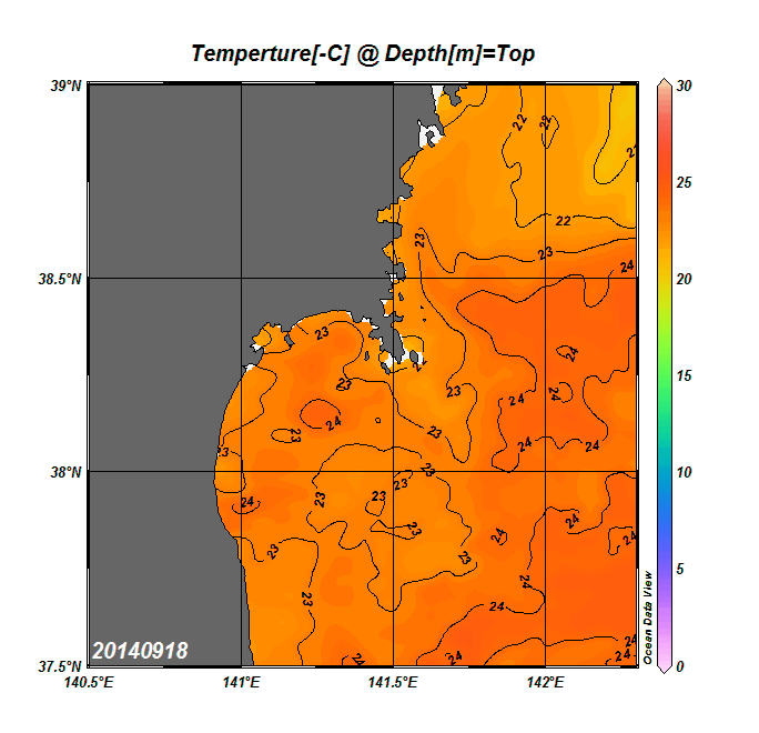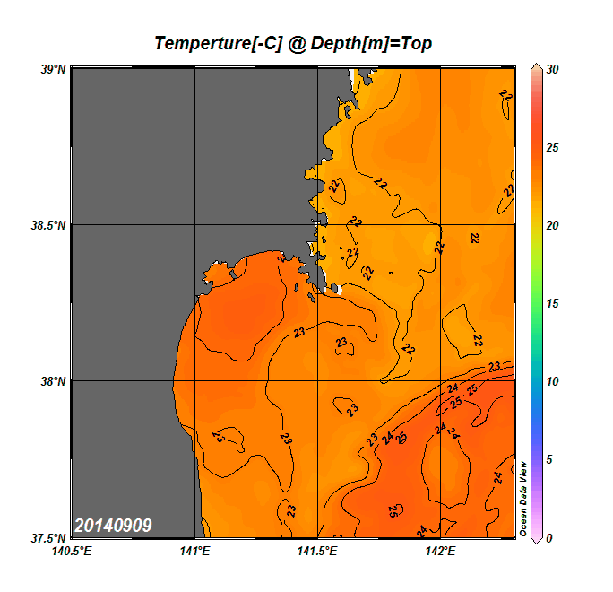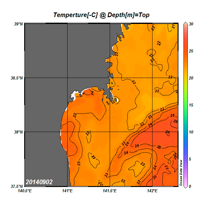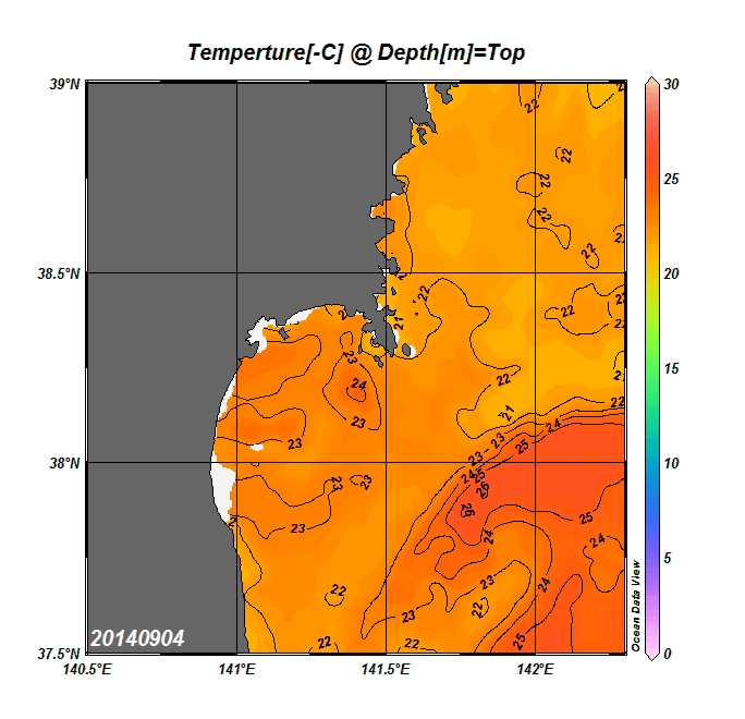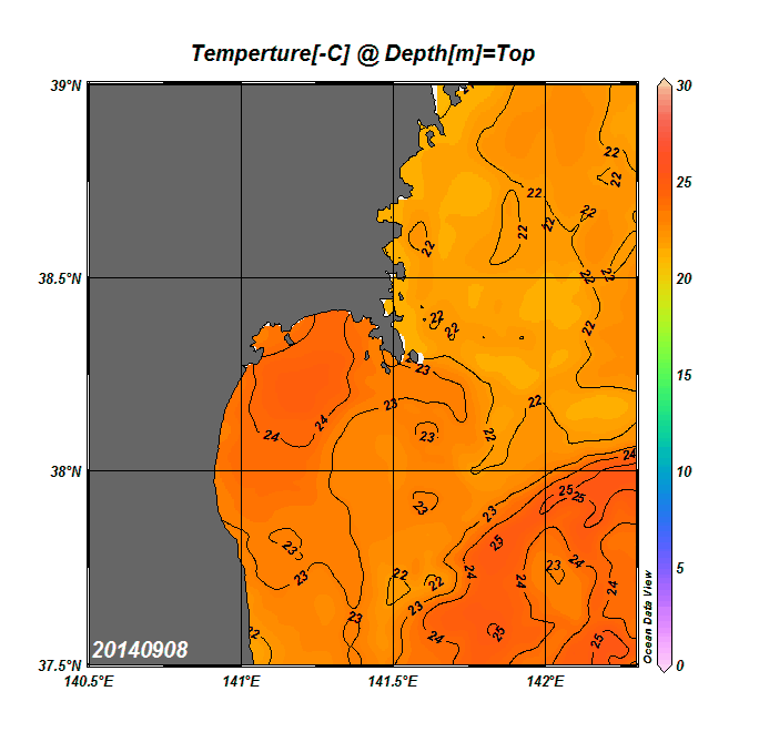 2008年4月から2025年8月までの、仙台湾付近表面水温を掲載しています。