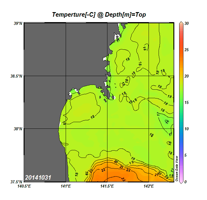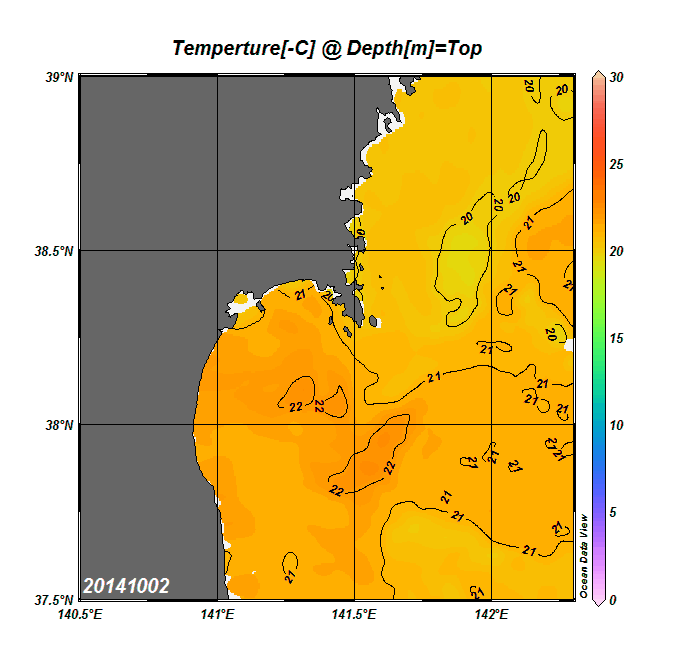2008年4月から2025年8月までの、仙台湾付近表面水温を掲載しています。