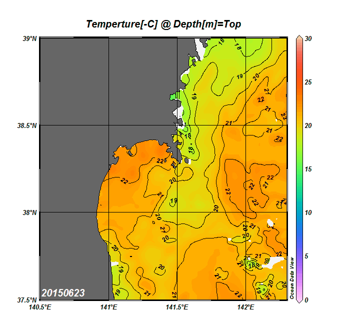 2008年4月から2025年8月までの、仙台湾付近表面水温を掲載しています。