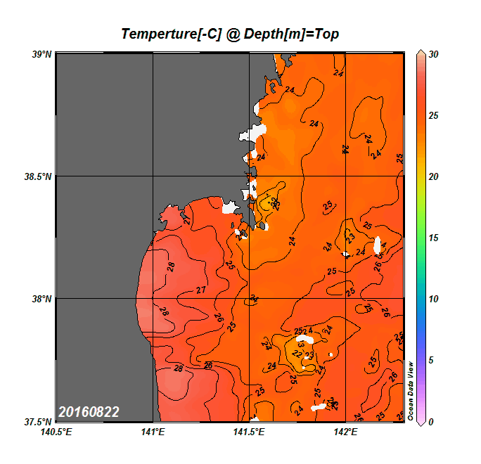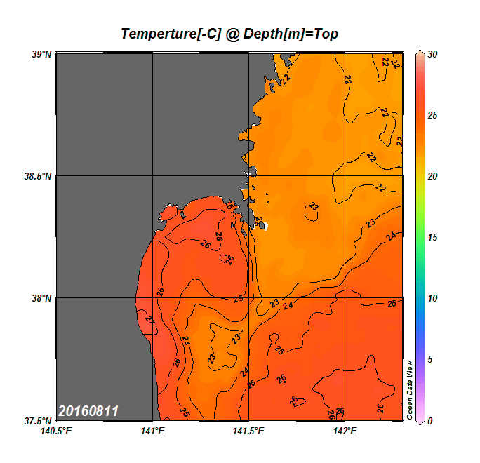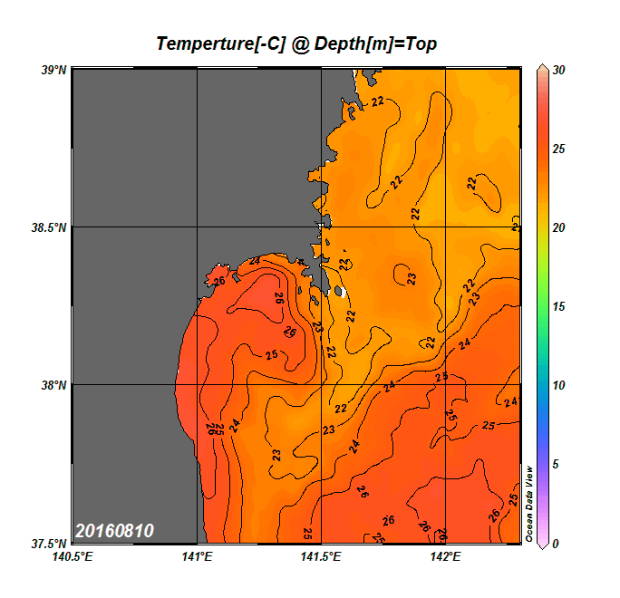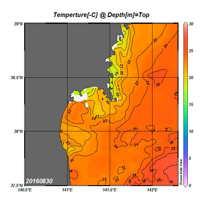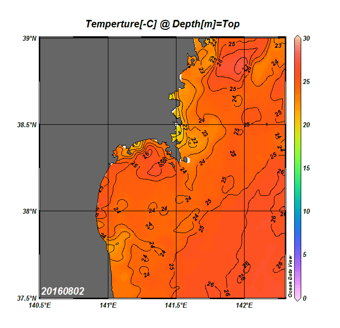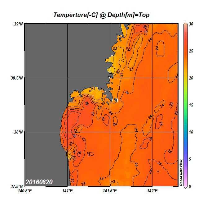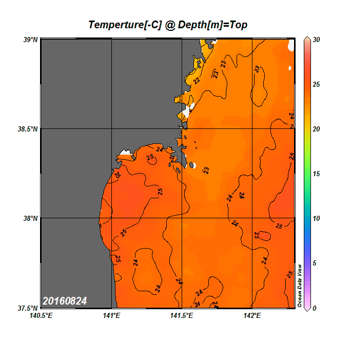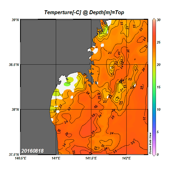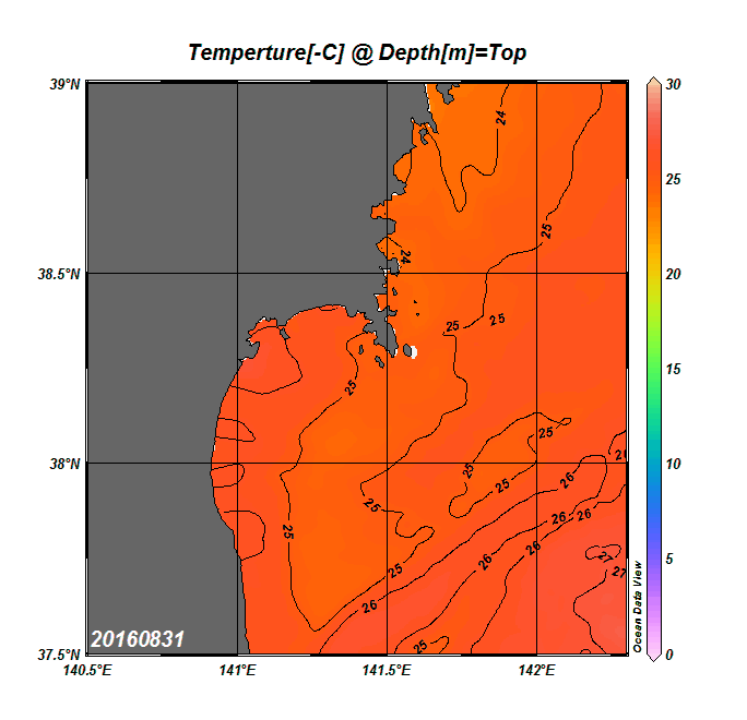 2008年4月から2025年8月までの、仙台湾付近表面水温を掲載しています。