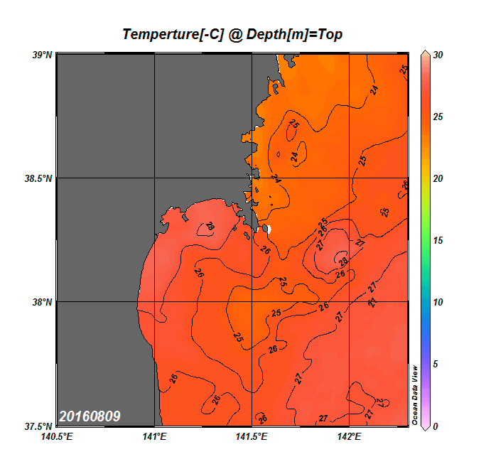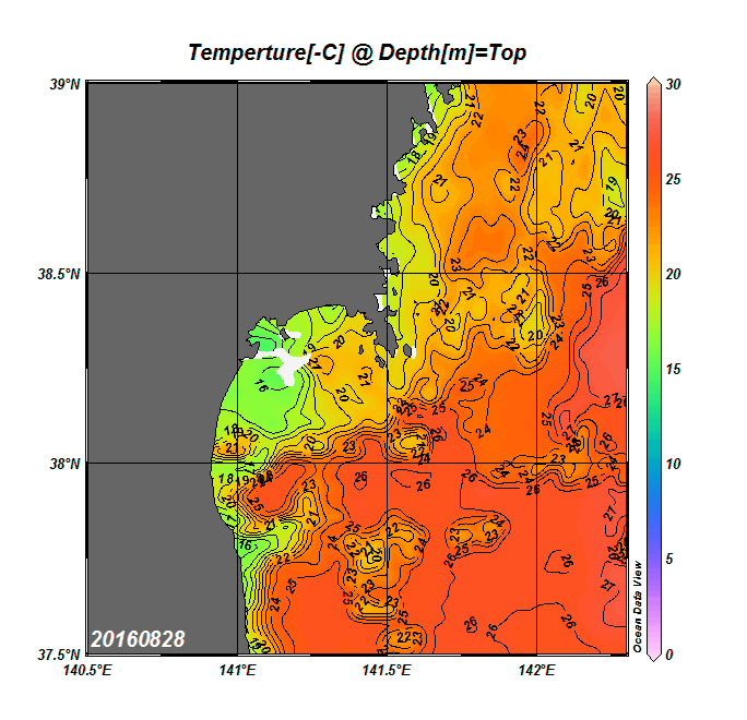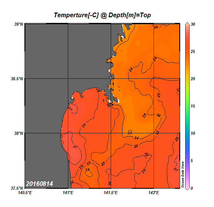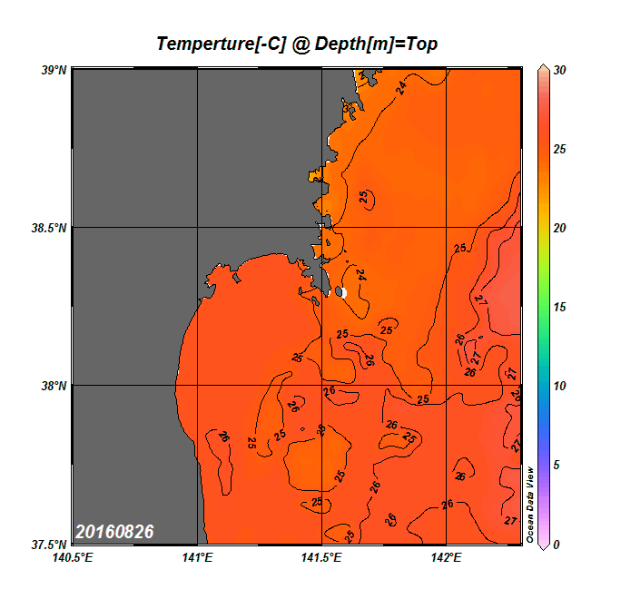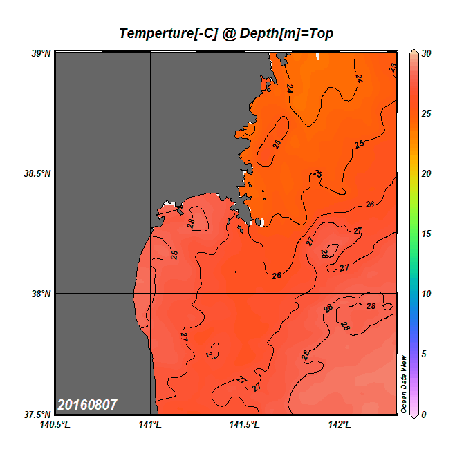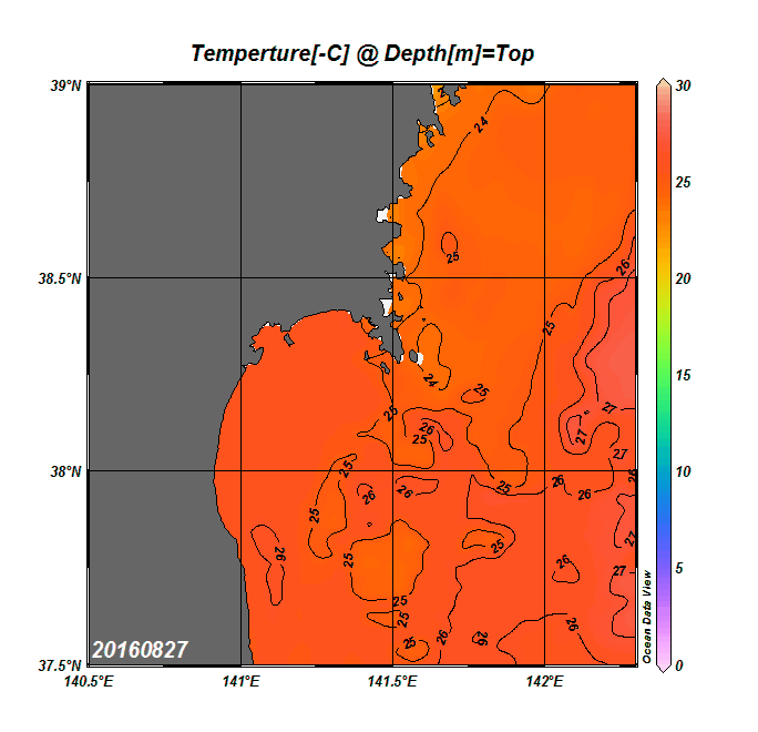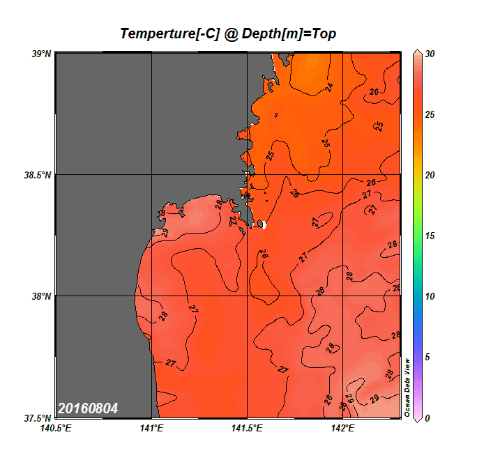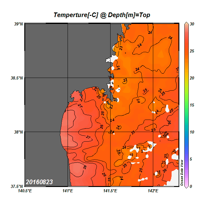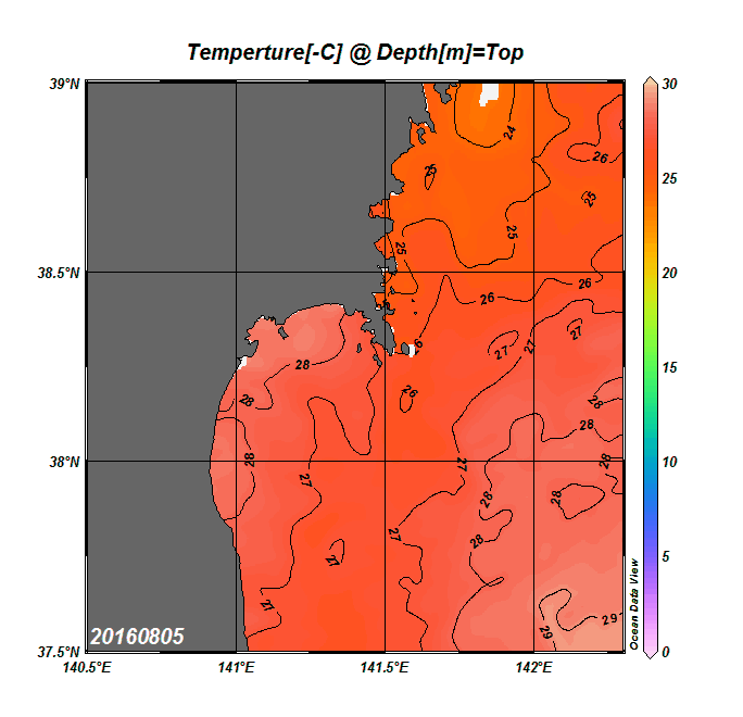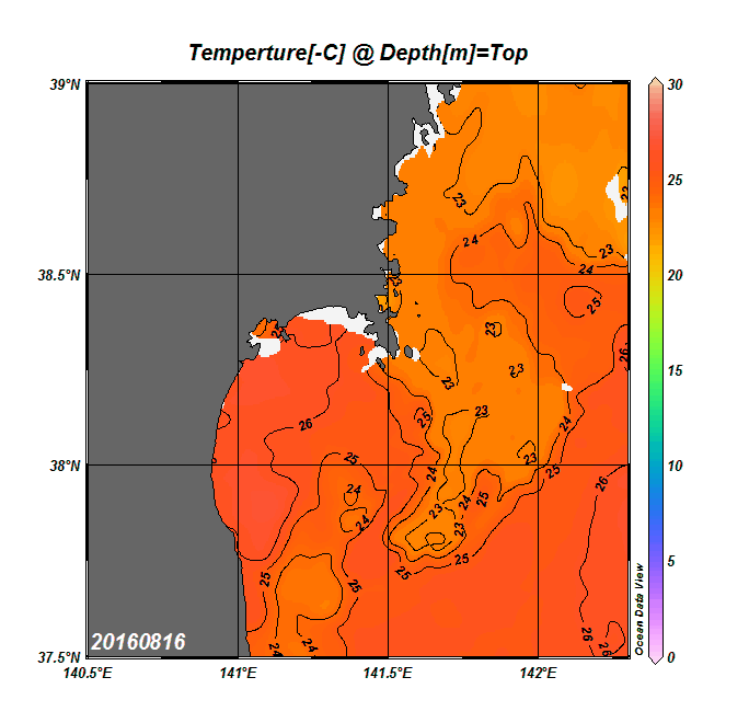 2008年4月から2025年8月までの、仙台湾付近表面水温を掲載しています。
