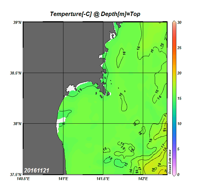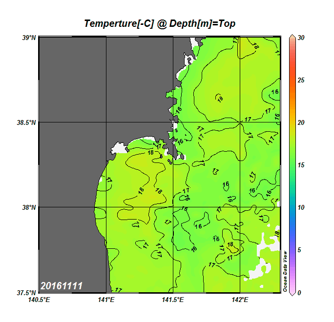 仙台湾付近表面水温(過去のデータ)