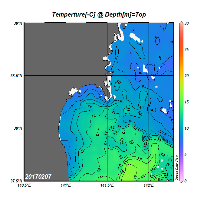 2008年4月から2025年8月までの、仙台湾付近表面水温を掲載しています。
