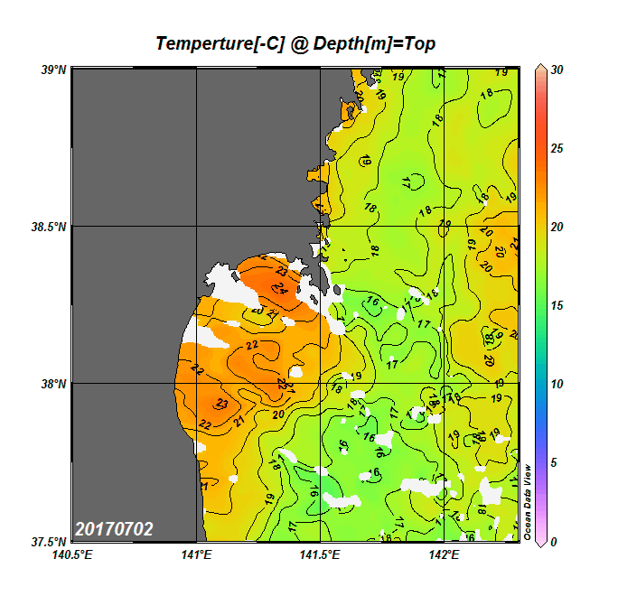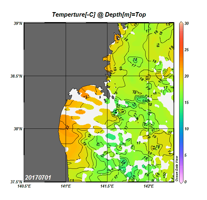 仙台湾付近表面水温(過去のデータ)