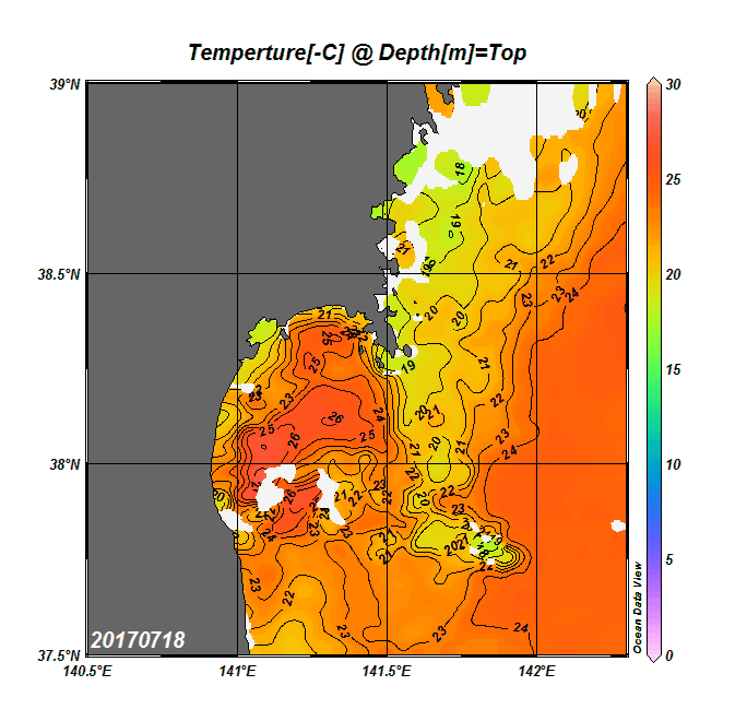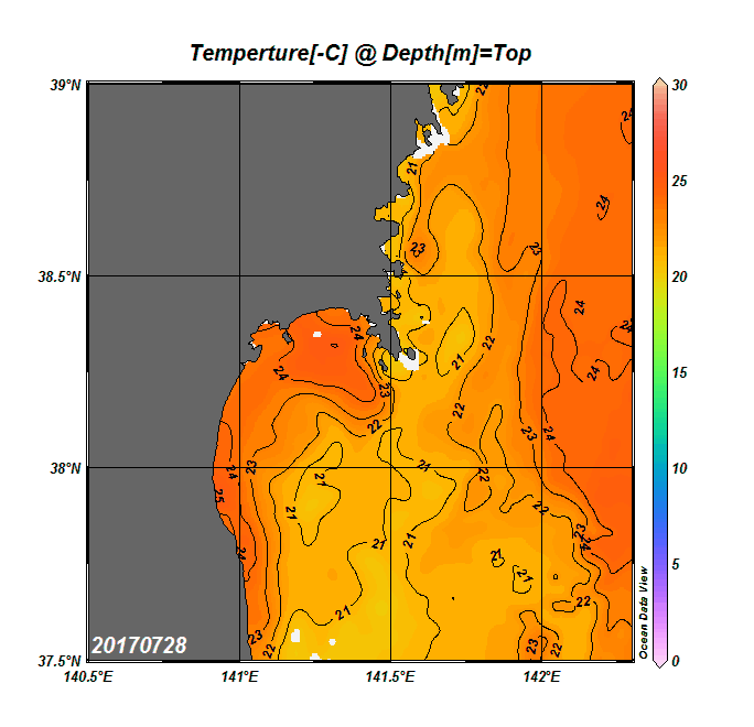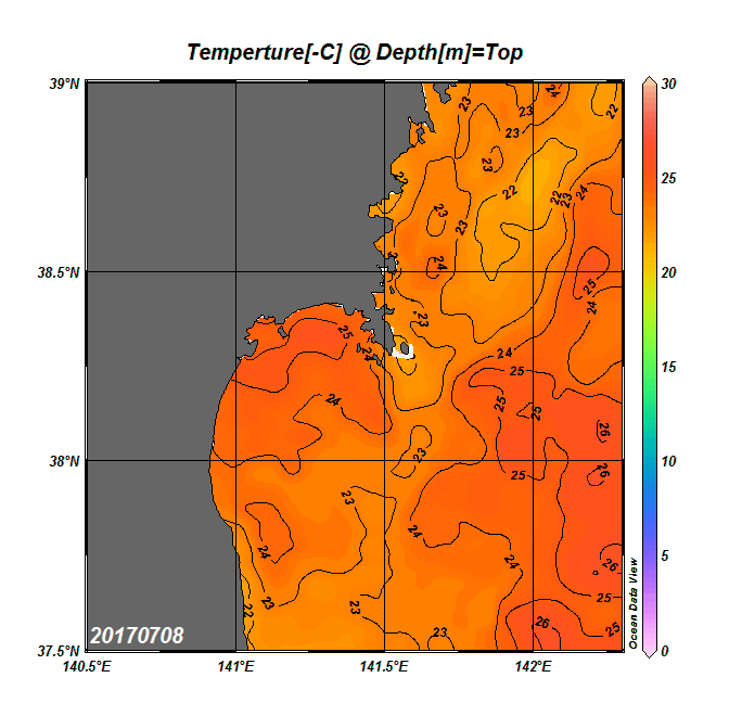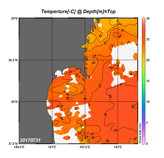 2008年4月から2025年8月までの、仙台湾付近表面水温を掲載しています。