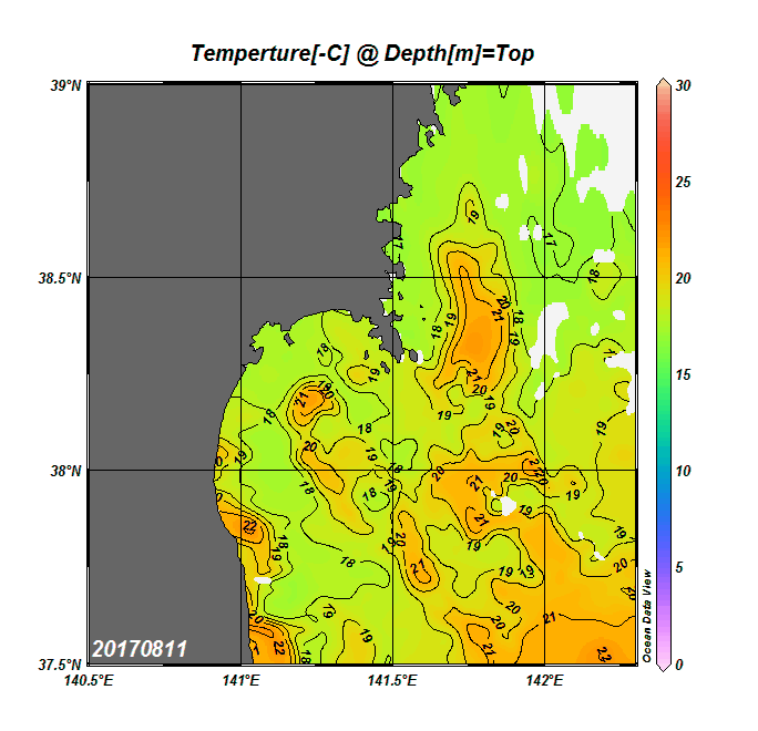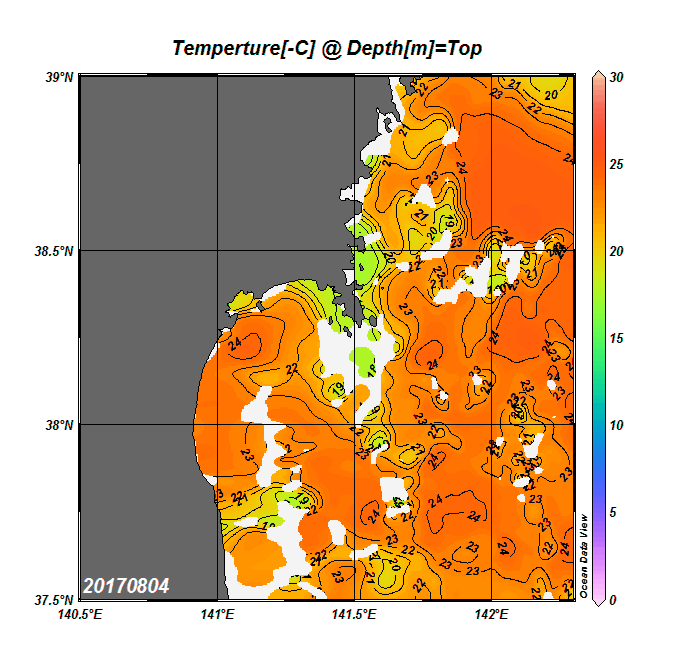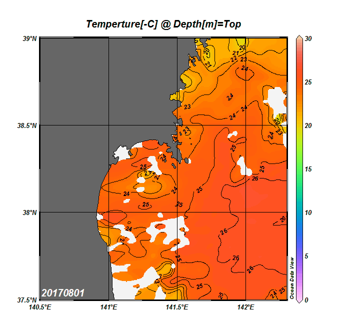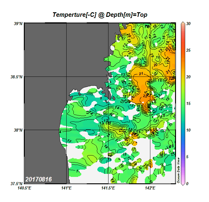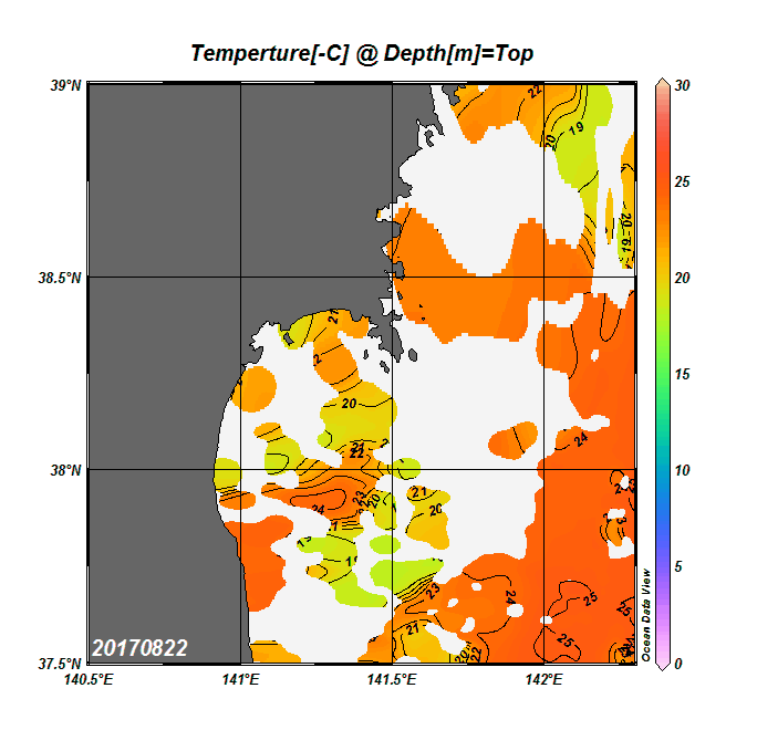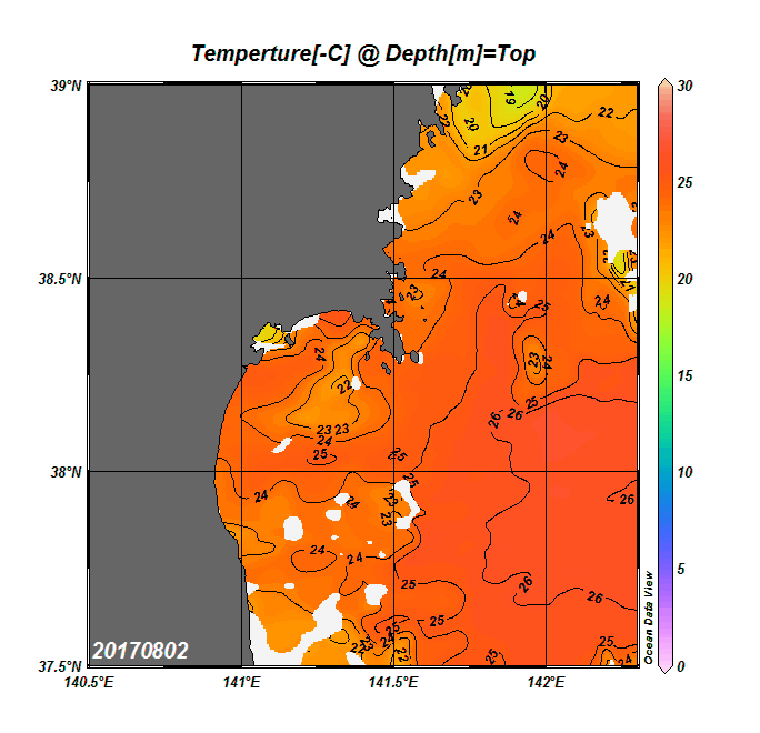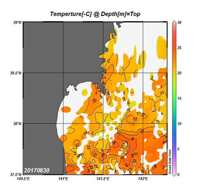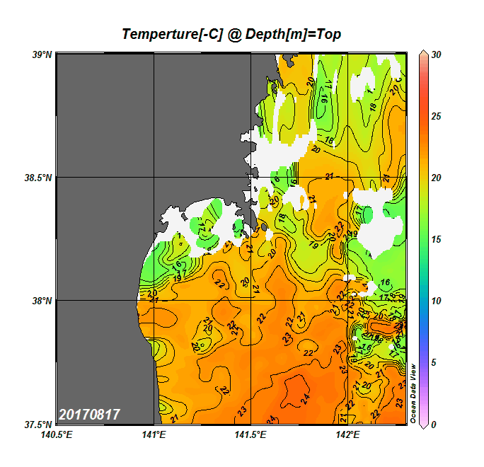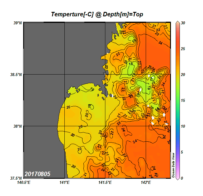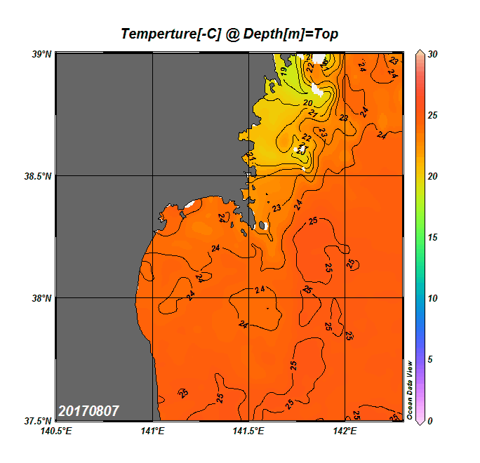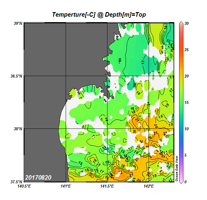 2008年4月から2025年8月までの、仙台湾付近表面水温を掲載しています。