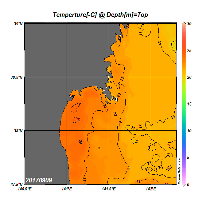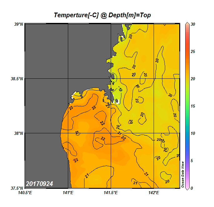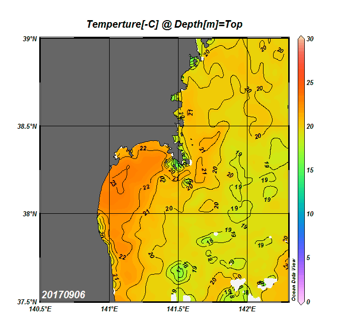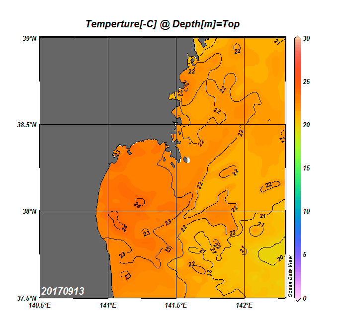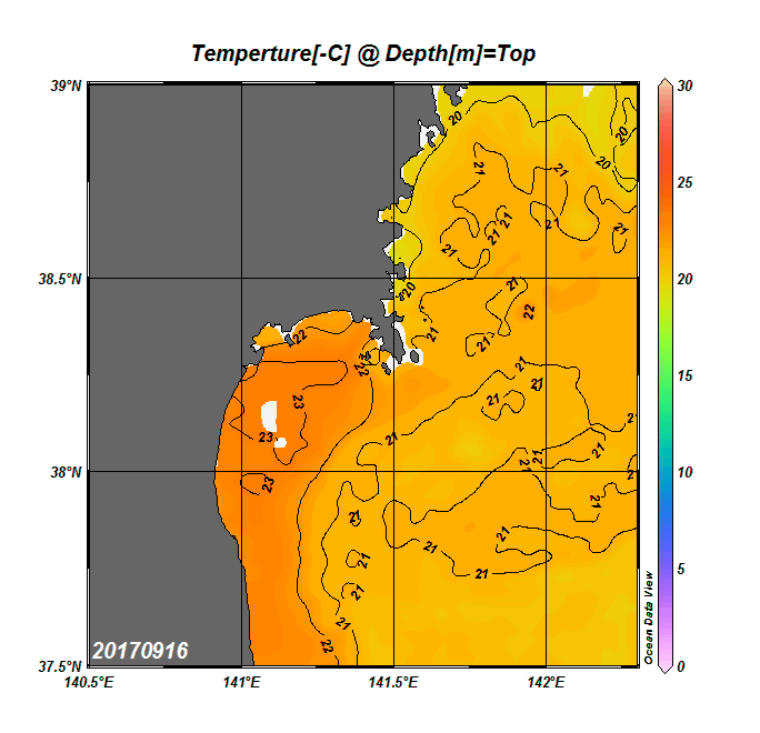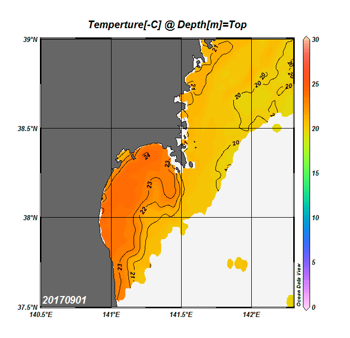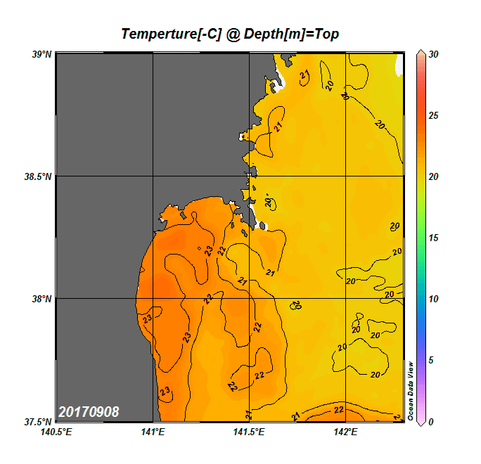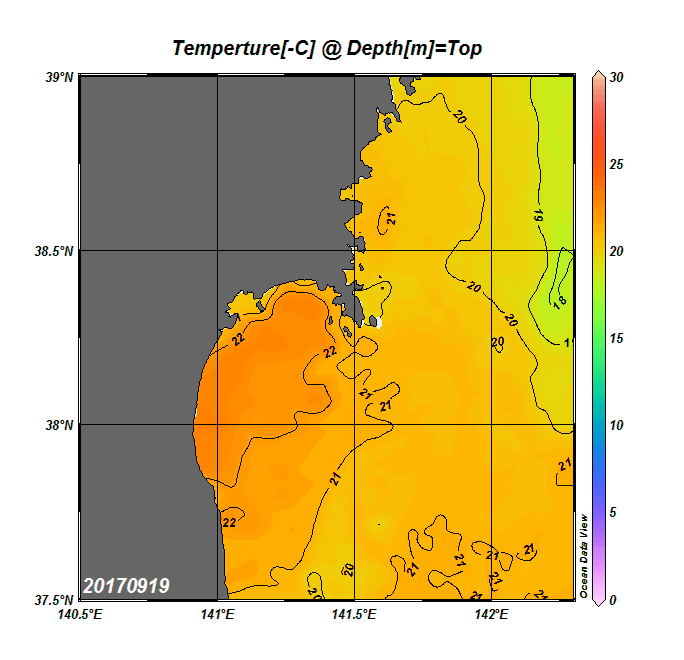 2008年4月から2025年8月までの、仙台湾付近表面水温を掲載しています。
