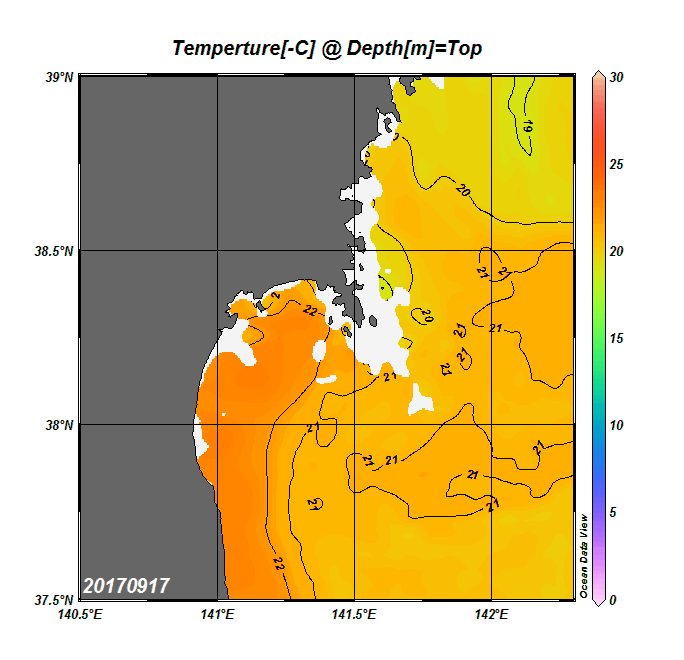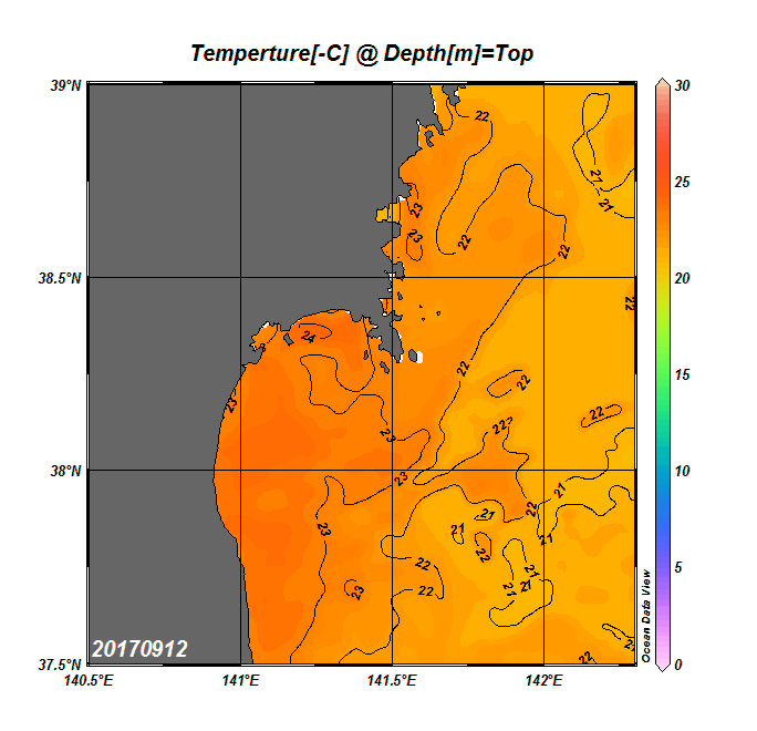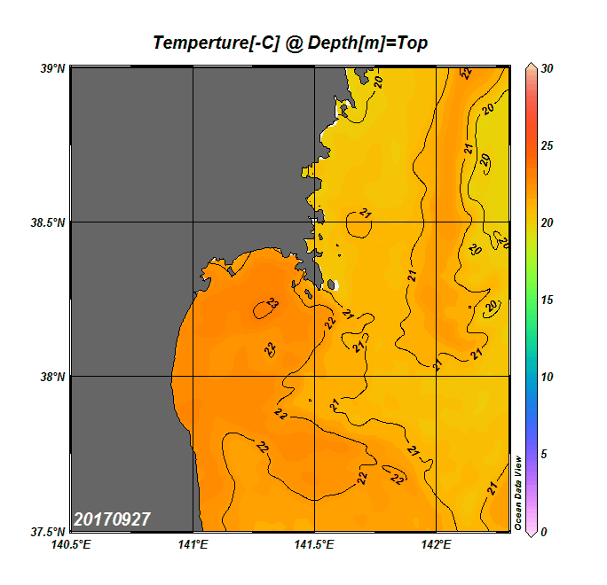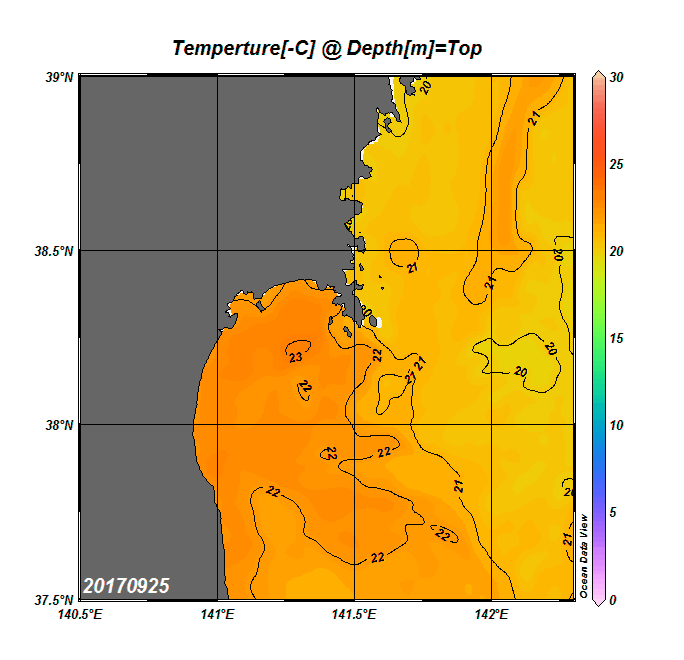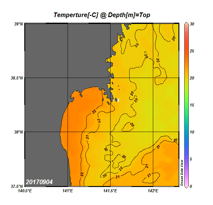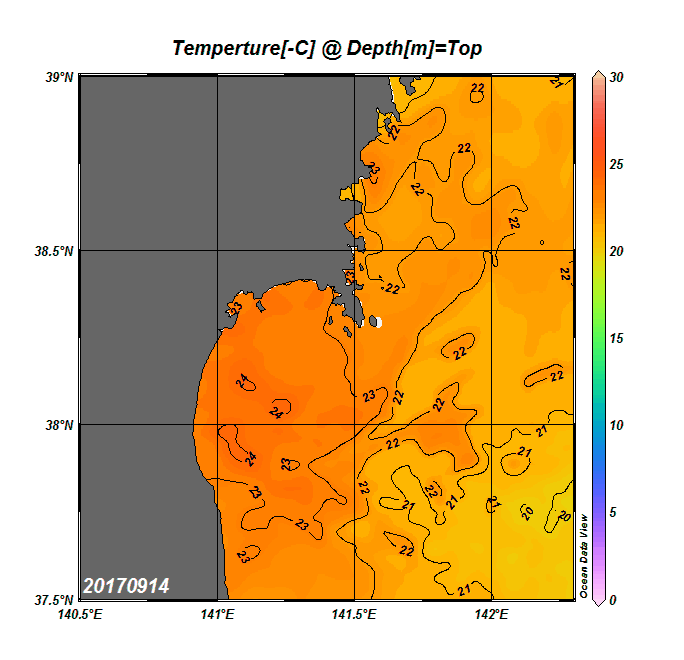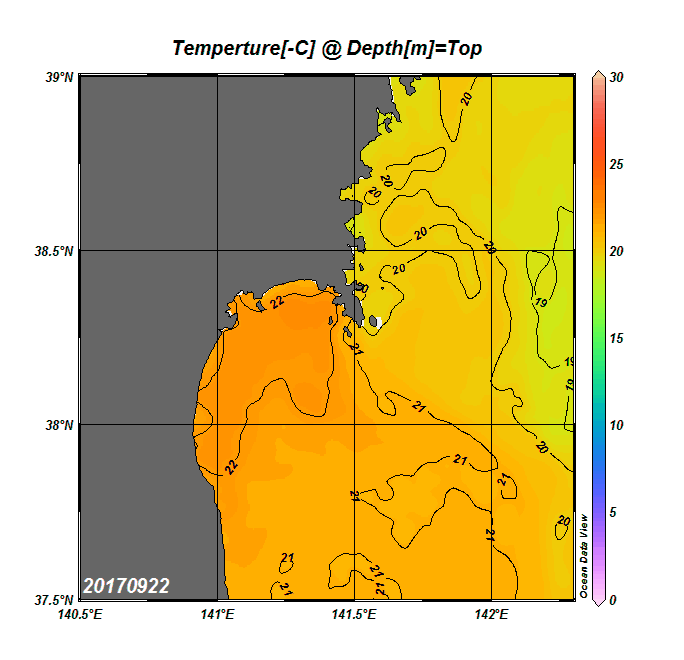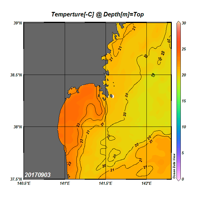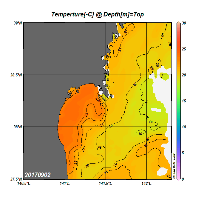 2008年4月から2025年8月までの、仙台湾付近表面水温を掲載しています。