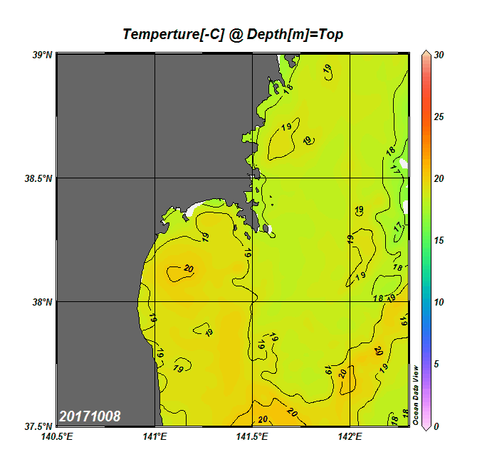 2008年4月から2025年8月までの、仙台湾付近表面水温を掲載しています。