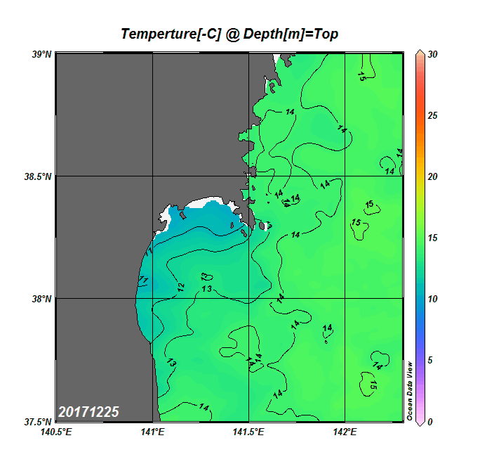 2008年4月から2025年8月までの、仙台湾付近表面水温を掲載しています。