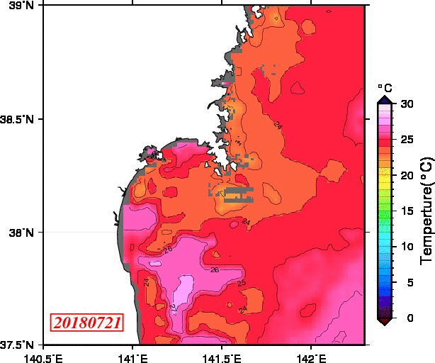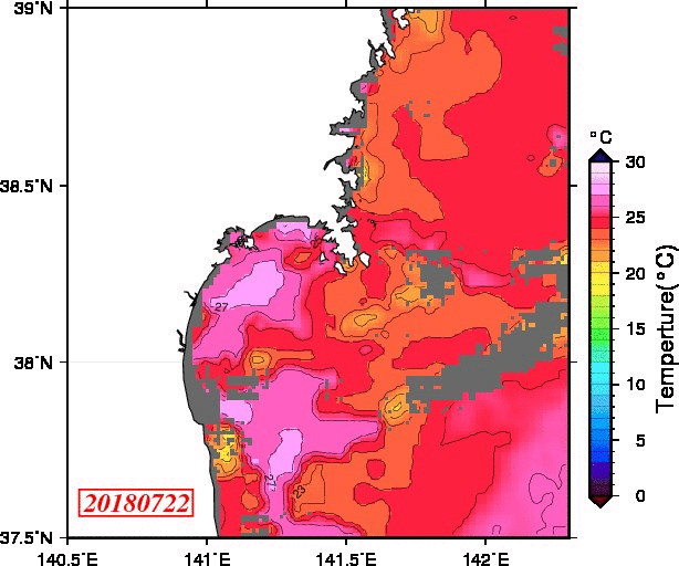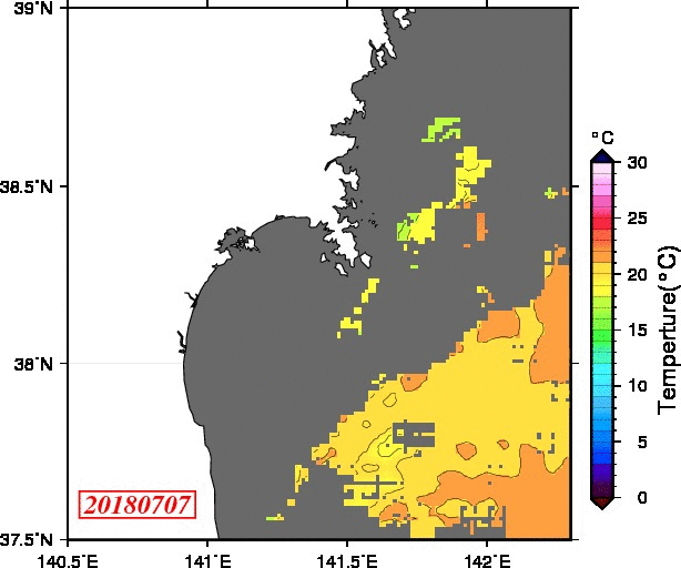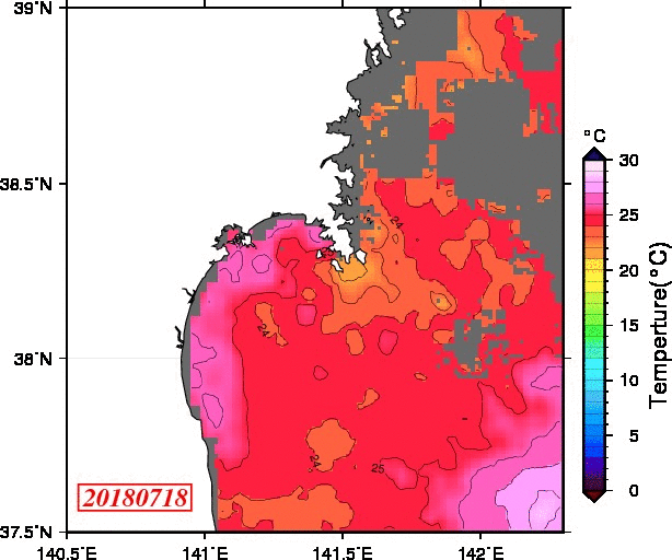 2008年4月から2025年8月までの、仙台湾付近表面水温を掲載しています。
