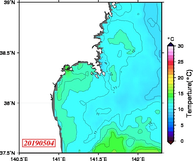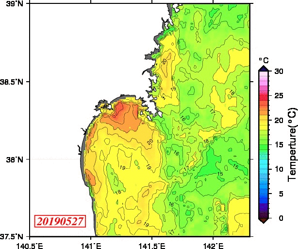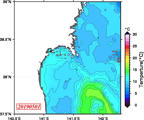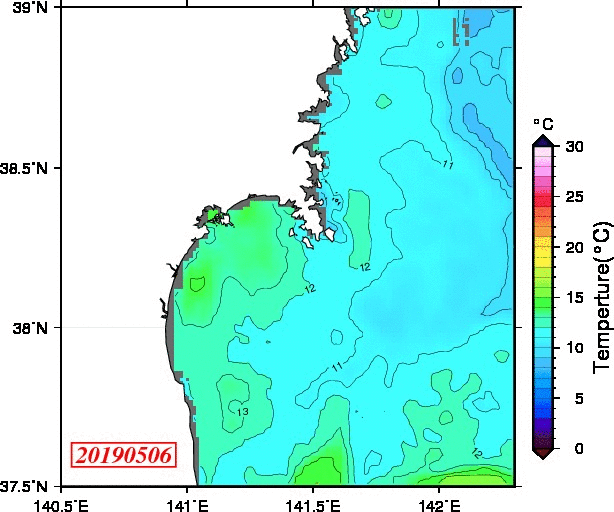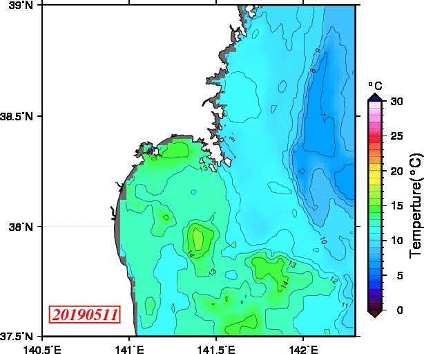 仙台湾付近表面水温(過去のデータ)
