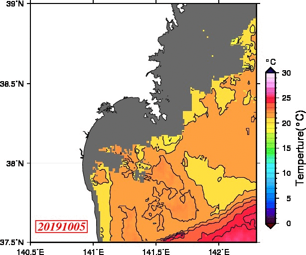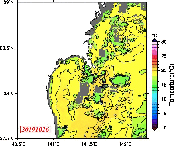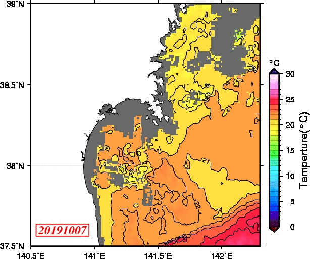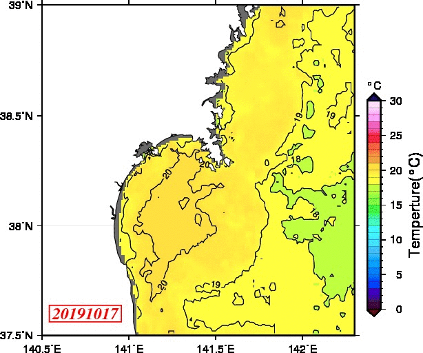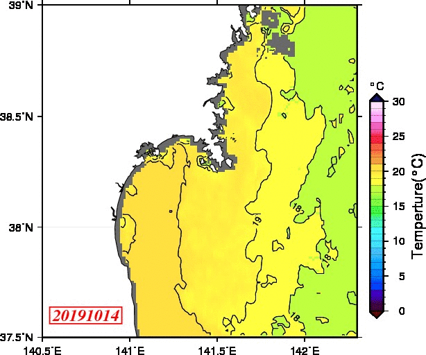 2008年4月から2025年8月までの、仙台湾付近表面水温を掲載しています。
