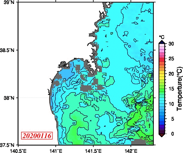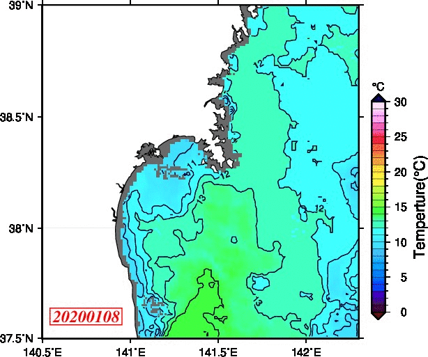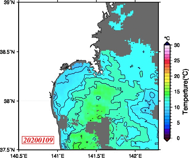 仙台湾付近表面水温(過去のデータ)