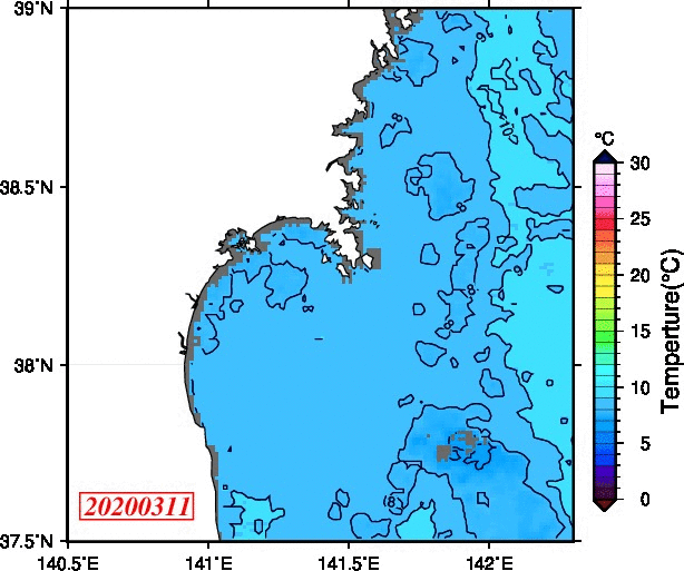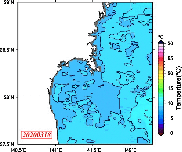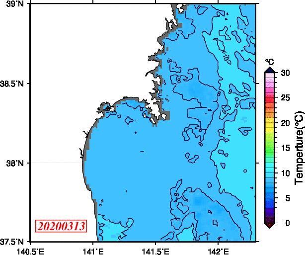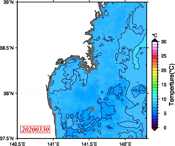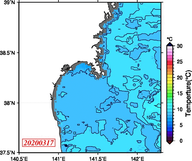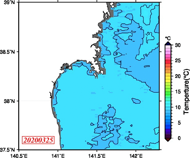 2008年4月から2025年8月までの、仙台湾付近表面水温を掲載しています。