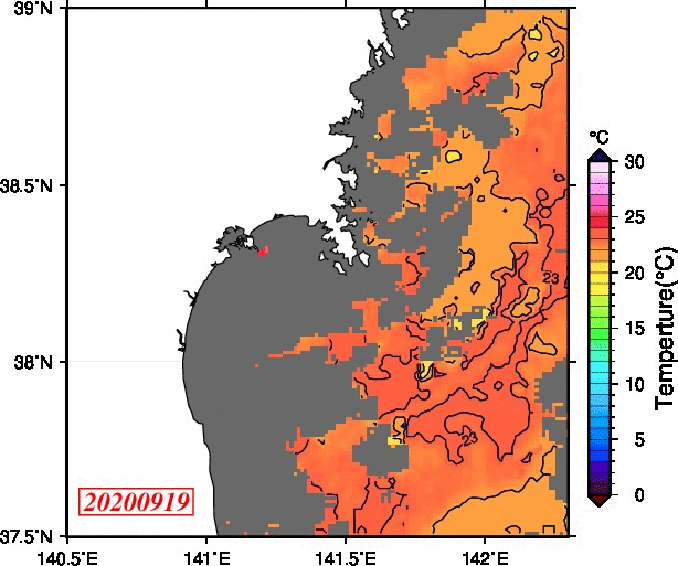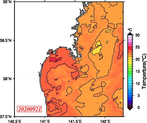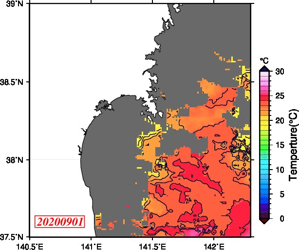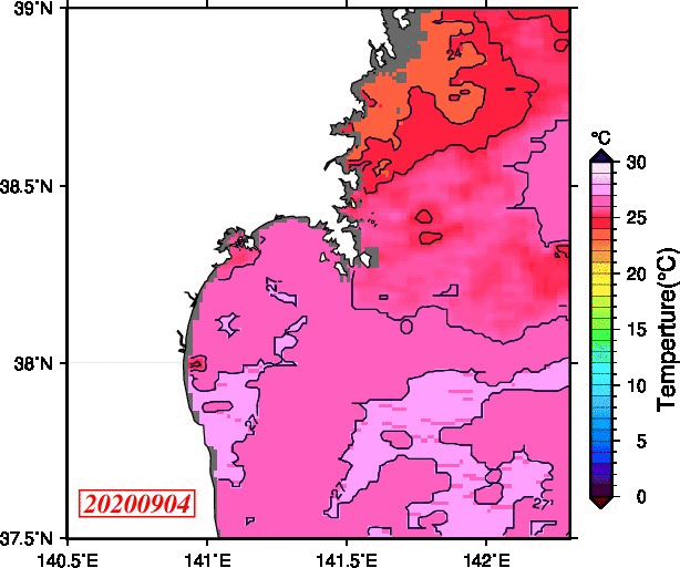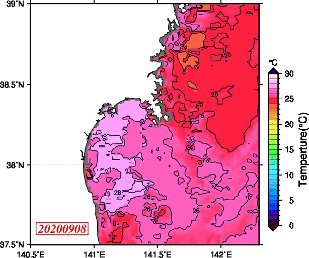 2008年4月から2025年8月までの、仙台湾付近表面水温を掲載しています。