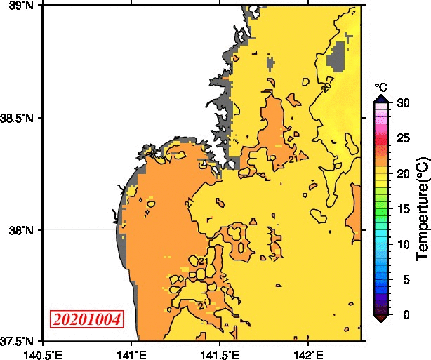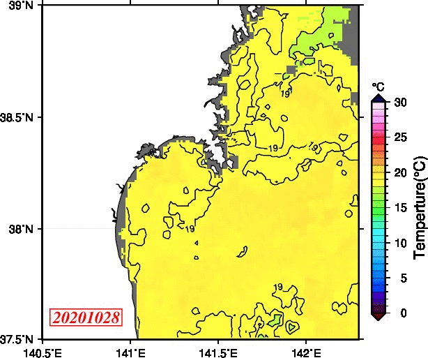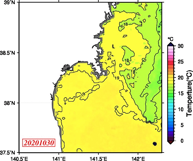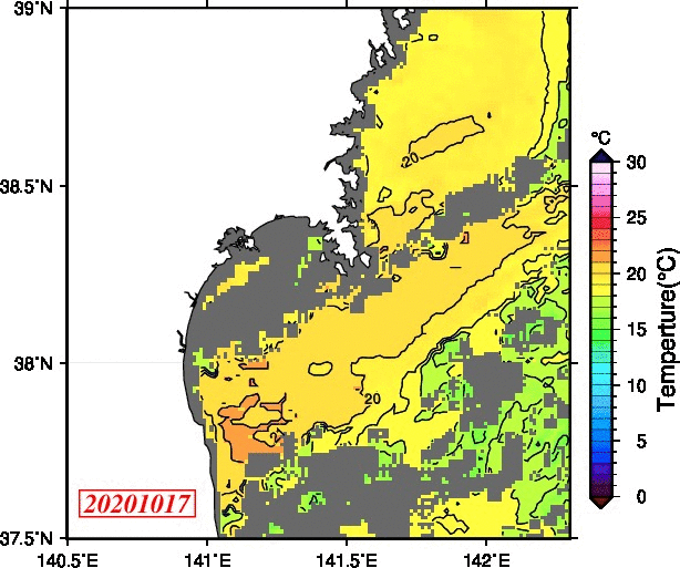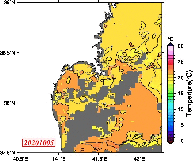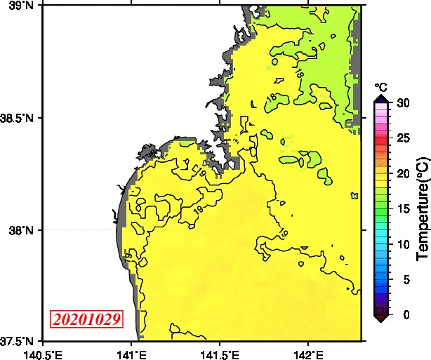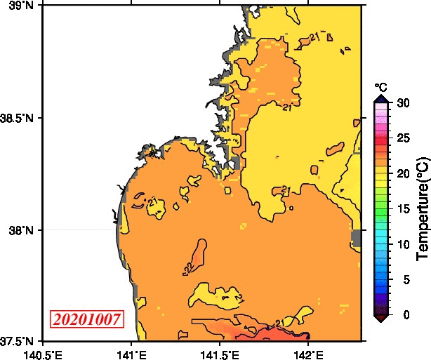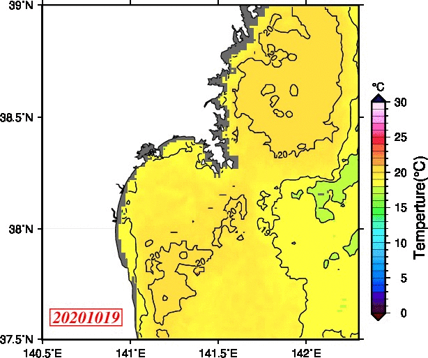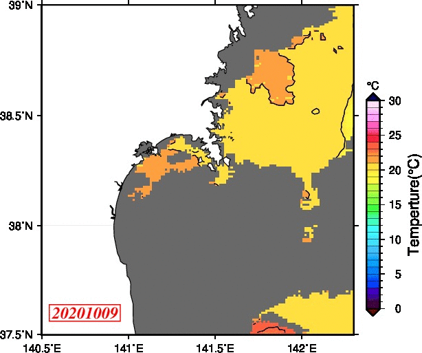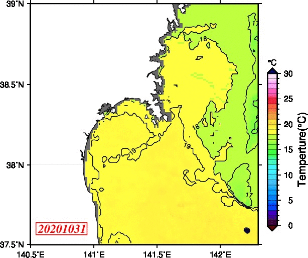 2008年4月から2025年8月までの、仙台湾付近表面水温を掲載しています。