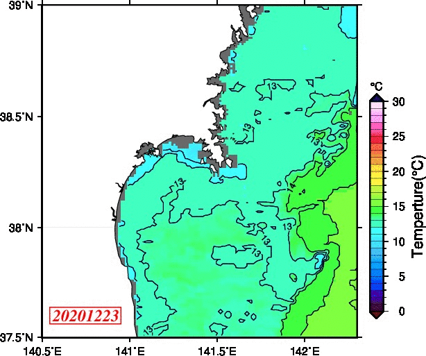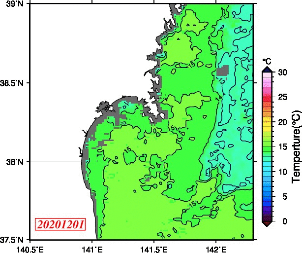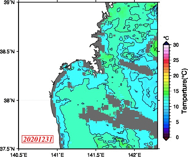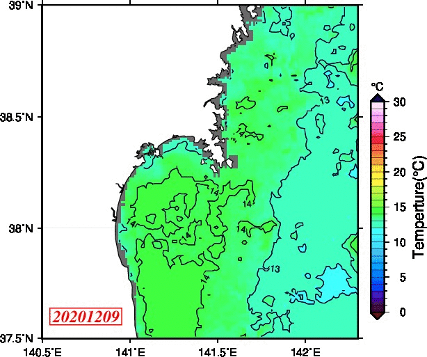 2008年4月から2025年8月までの、仙台湾付近表面水温を掲載しています。